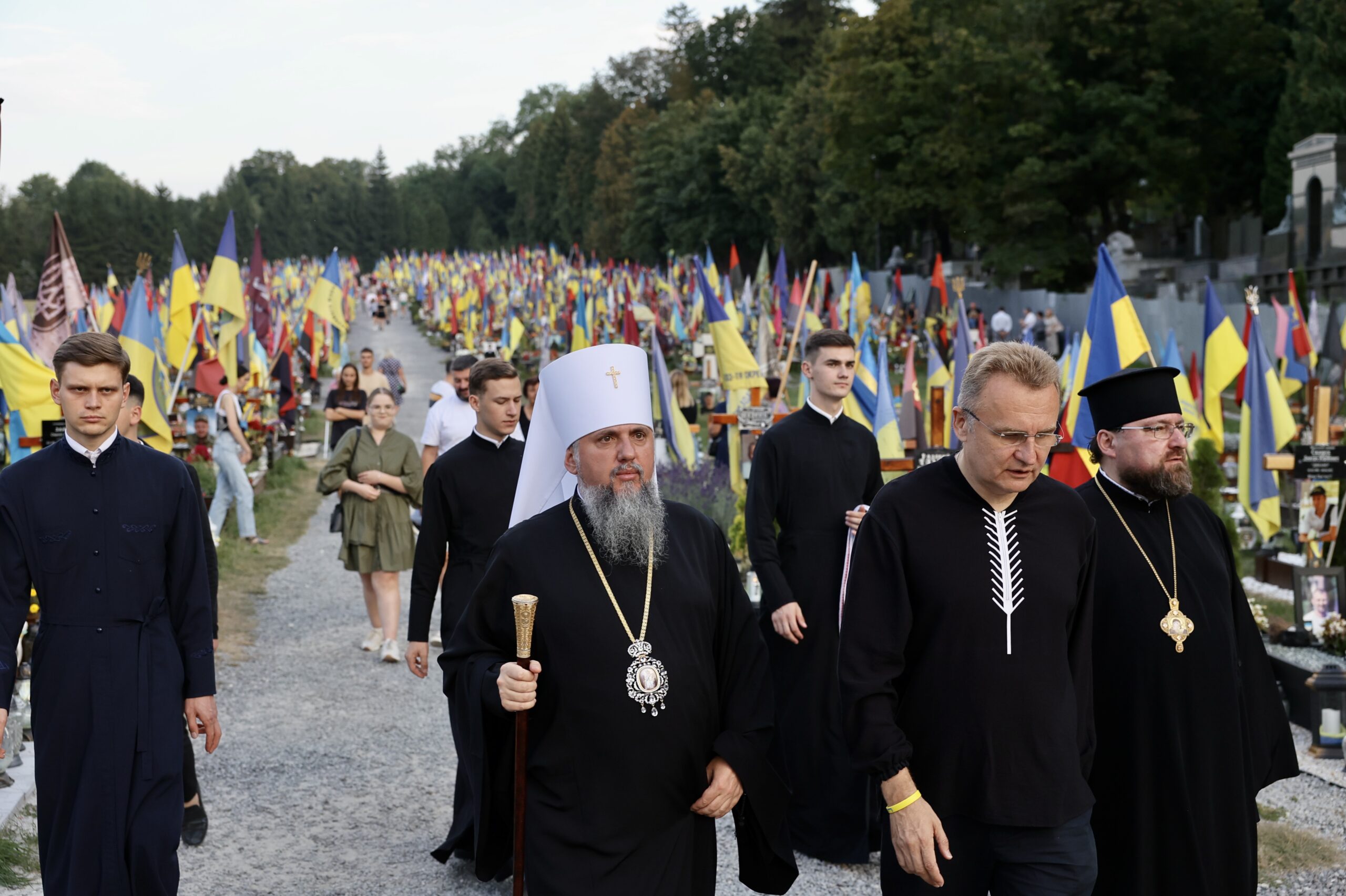 Предстоятель Православної Церкви України Блаженніший Епіфаній вшанував полеглих Героїв на військовому кладовищі у Львові. Цього дня в Україні відзначається День пам’яті полеглих захисників.