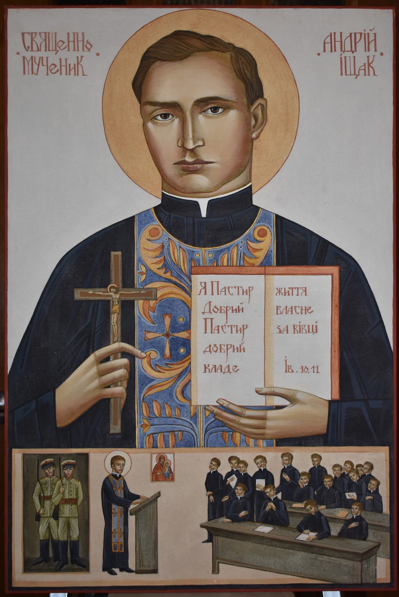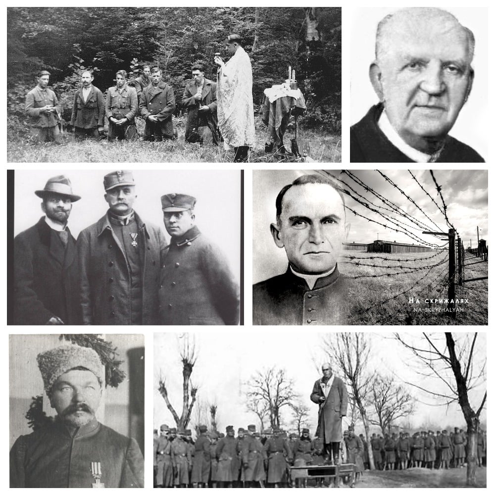 Серед героїв виставки – перший відомий український капелан, професор Львівського університету, священник УГКЦ Яків Геровський; український композитор і хоровий диригент, священник УГКЦ, військовий капелан Йосиф Кишакевич; доктор теологічних наук, відомий учений та громадсько-культурний й освітній діяч, блаженний мученик УГКЦ Андрій Іщак; військовий капелан 30-го (львівського) піхотного полку на італійському фронті Костянтин Богачевський; капелан австрійського війська в роки Першої світової війни Емілян Горчинський; редемпторист, бельгійський громадянин, польовий духівник при УГА Франц Ксаверiй Бонн; єпископ Перемиської єпархії УГКЦ, репресований радянською владою, блаженний Католицької церкви Йосафат Коциловський та інші.