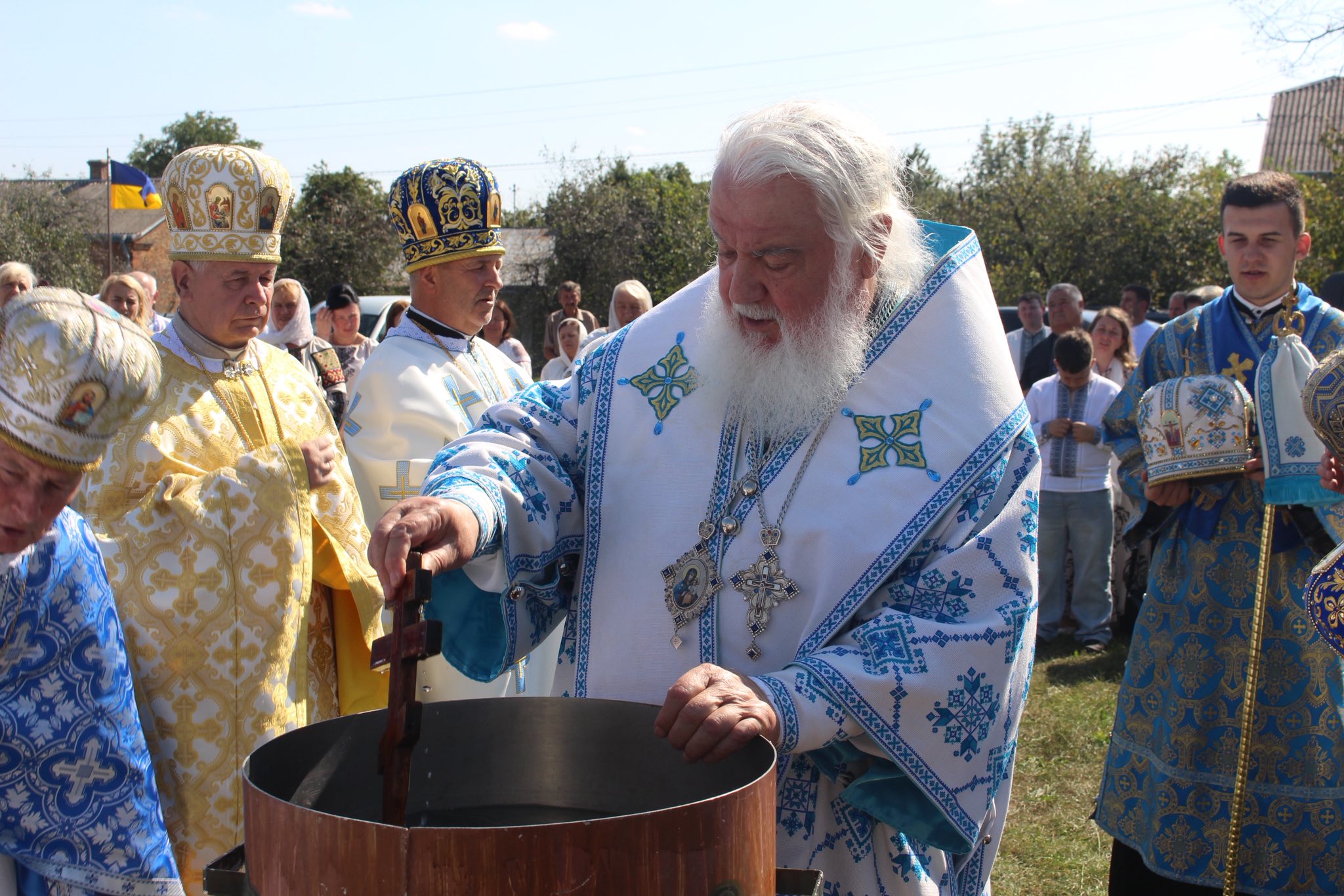 Завершилася святкова подія чином оновлення храму та чином малого освячення води, урочистим обходом і окропленням храму ззовні освяченою водою.
