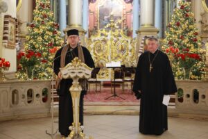 Духовно-мистецьку програму виконали солісти, хор та камерний оркестр Заслуженої академічної капели України, лауреата Національної премії імені Тараса Шевченка «Трембіта», художній керівник та головний диригент – народний артист України Микола Кулик. У програмі прозвучала низка духовних творів, зокрема гімн «Слава во вишніх Богу!», яким 125 років тому Львів зустрів свого нового митрополита – Андрея Шептицького, а також колядка на слова Ігоря Калинця.