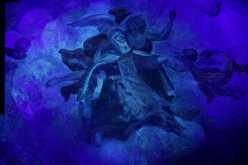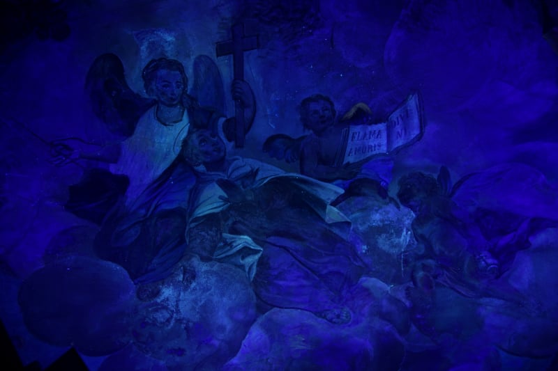 У минулому році реставратори провели низку робіт, спрямованих на ретельну консерваційну діагностику елементів малярського оздоблення храму. Серед них –лазерне сканування інтер’єру церкви, фотографічна інвентаризація внутрішнього оздоблення, фотограмметричні обміри розписів, розробка консерваційної креслярської документації, консерваційні дослідження. Також підготували мистецтвознавчий експертний звіт про стан дослідження, історію, опис та мистецькі проблеми інтер’єру костелу. За результатами дослідження, стан збереженості оздоблення визнано катастрофічним і таким, що потребує негайних реставраційних робіт.