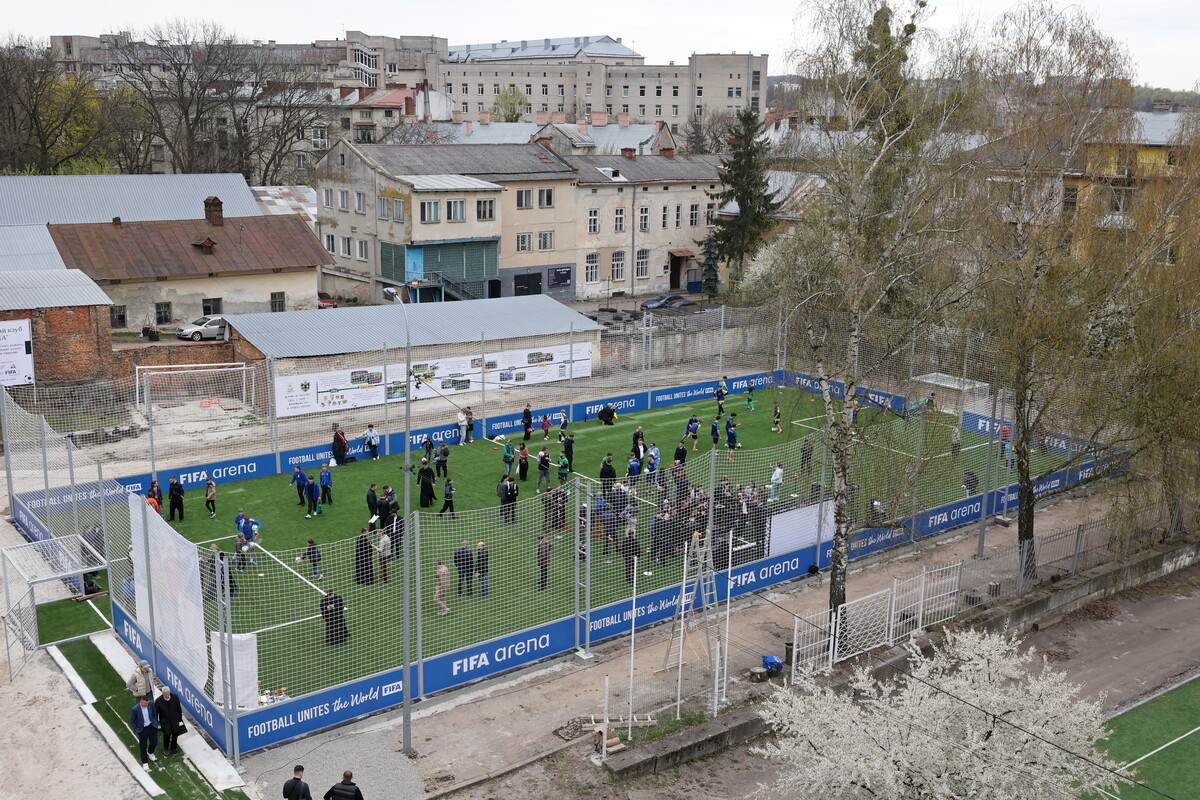 У повідомленні зазначають, що Львів став першим містом в Україні, де з’явилися два сучасні модульні мінімайданчики зі штучним покриттям у рамках програми «FIFA Arena», спрямованої на підтримку юних футболістів.