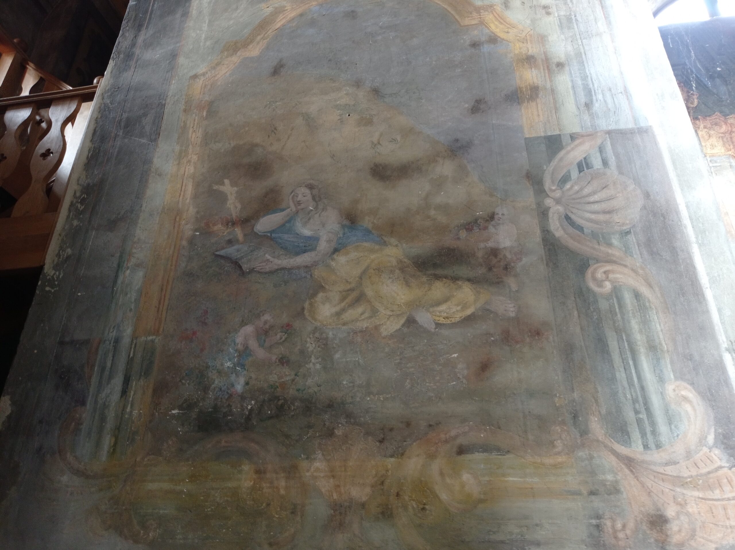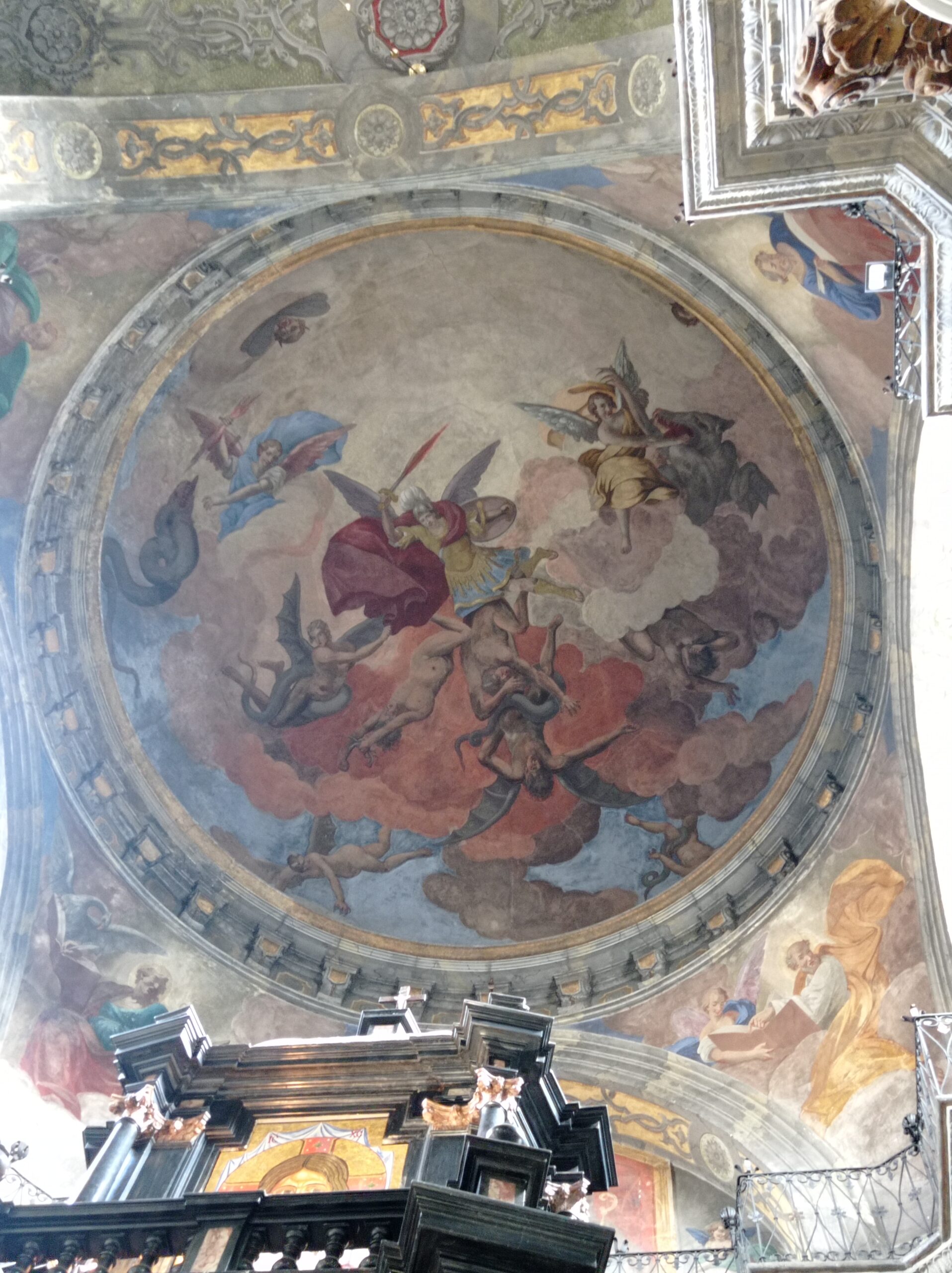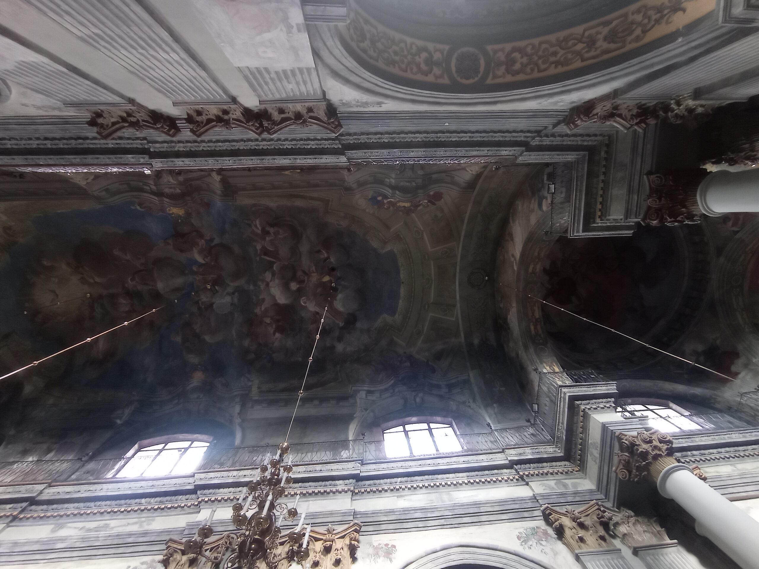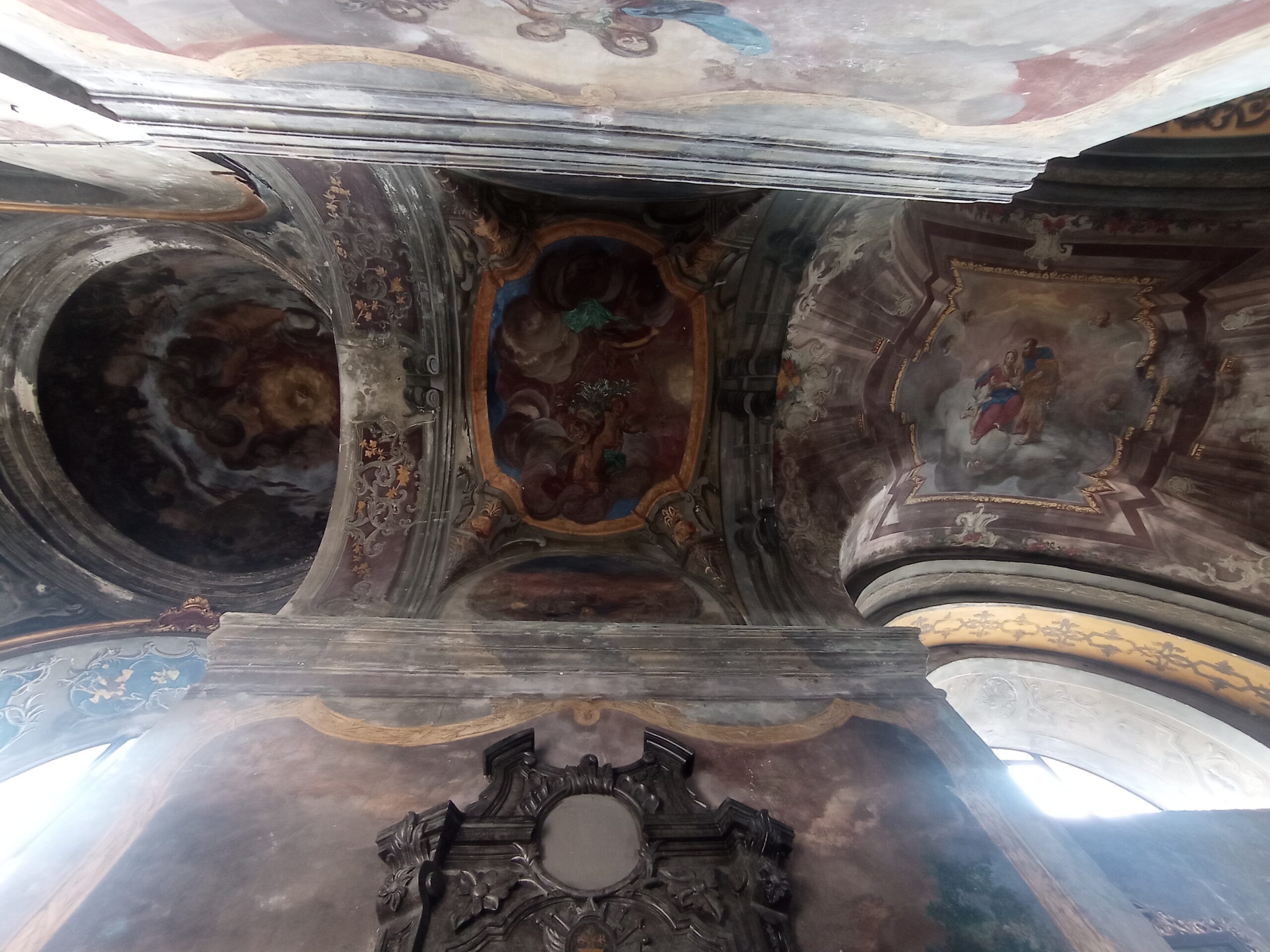 «Болонський маляр Джузеппе Педретті разом зі своїм учнем – львівським монахом Бенедиктом Мазуркевичем – розробив і виконав першу складну програму розписів храму. Звичайно, вони протягом століть теж були перемальовані. Стінопис було реставровано і частково перемальовано тричі – 1870, 1906, 1918 роки. Тобто те, що ми бачимо – не факт, що оригінал. Хоча є й оригінальні фрески і склепіння, зокрема над вівтарем і головною навою. Під час реставрації зображення поправляли, а дещо просто малювали наново. Тому зараз можемо бачити, що в деяких місцях є щось зовсім інше, а подекуди зображення те саме, але перемальоване заново», – зазначив настоятель храму.