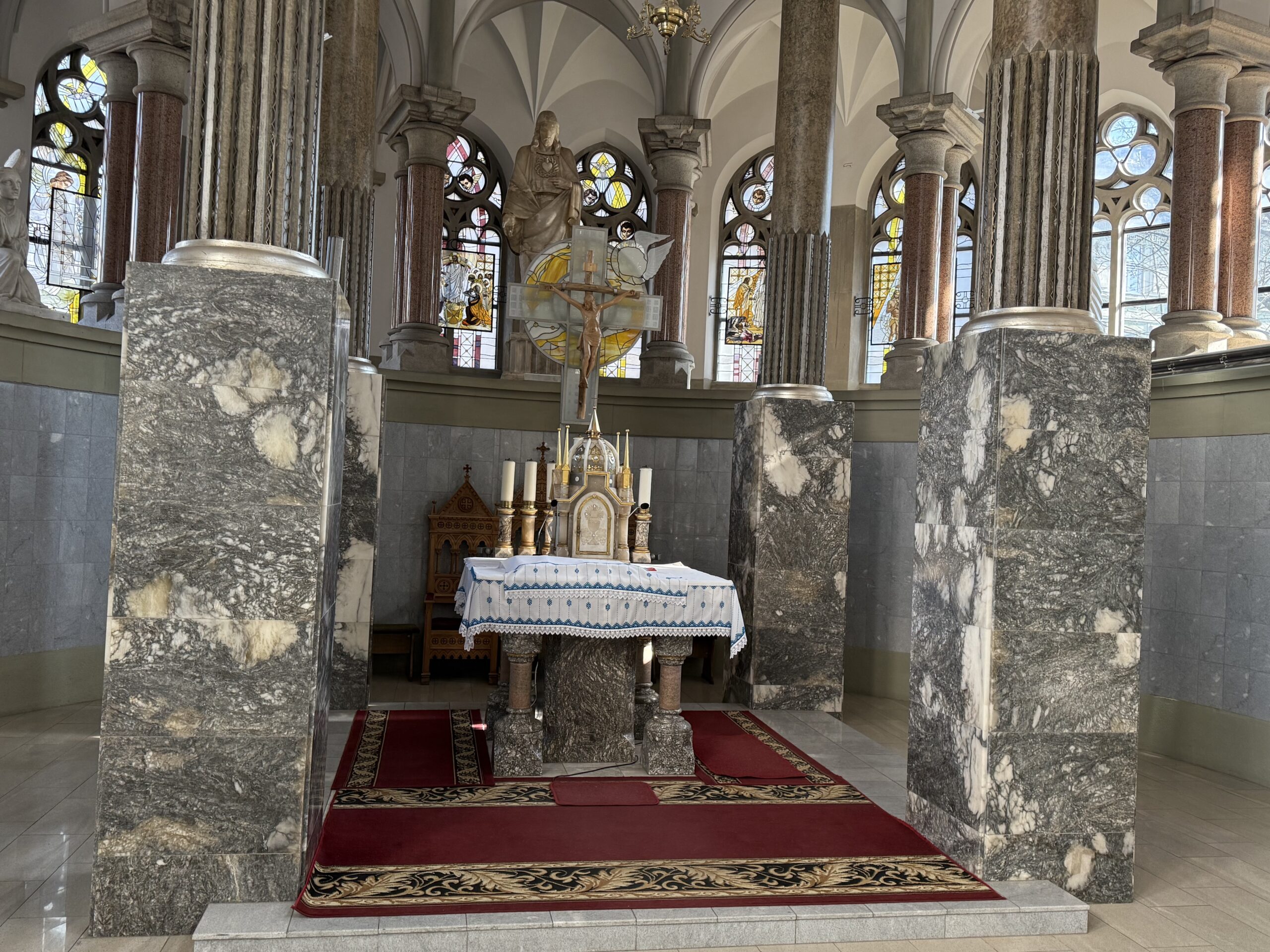 Вівтарі в обох нішах розробили архітектор підлоги Андрій Підлісний та вітражист Олександр Личко.