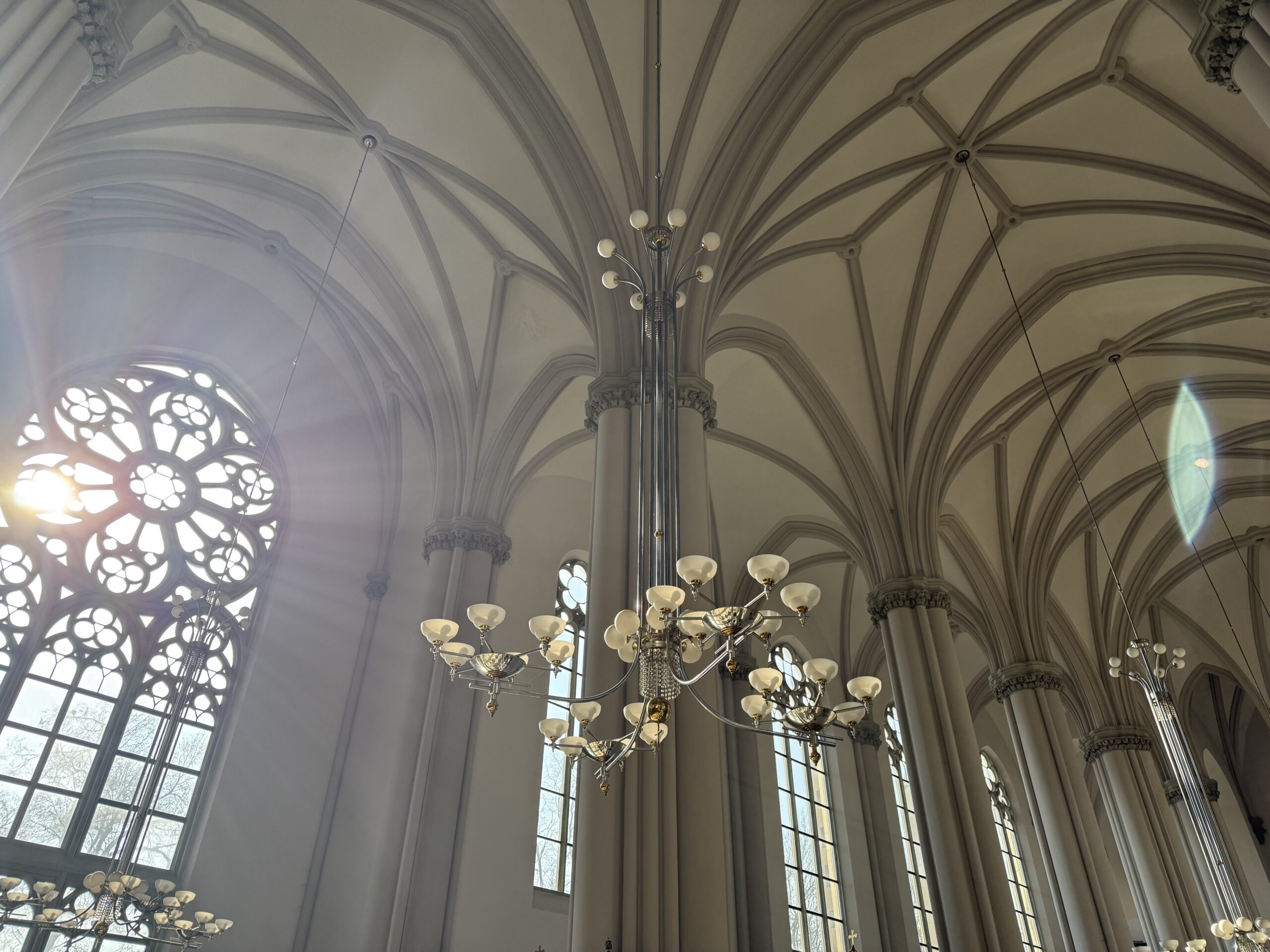 Привертають увагу світильники. У 90-х роках у храмі можна було побачити кілька «різнокаліберних» люстр, які люди приносили, звідки могли. Одна із них, як кажуть, навіть походила із ресторану «Фестивальний», що розташовувався на теперішній вулиці Січових стрільців. А зі сучасними панікадилами пов’язаний несподіваний момент.