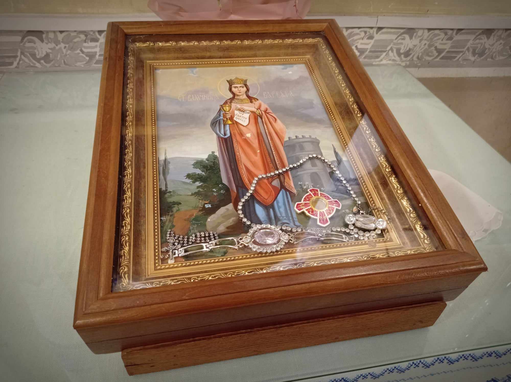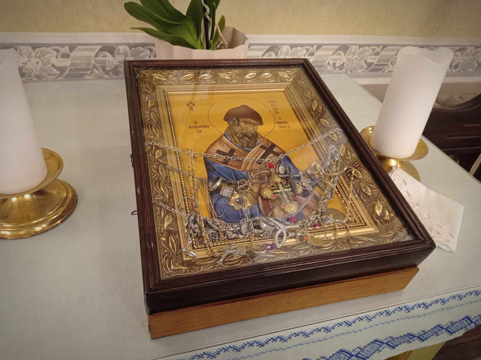 У храмі святого Іоана Золотоустого є ікони з мощами святої Варвари та святого апостола Андрія. Є також ікона святого Спиридона із частинкою його взуття. Ця ікона не проголошена чудотворною офіційно, проте прикрашена величезною кількістю дарів, які люди приносять в подяку за вислухані молитви. При храмі діє церковна крамниця.