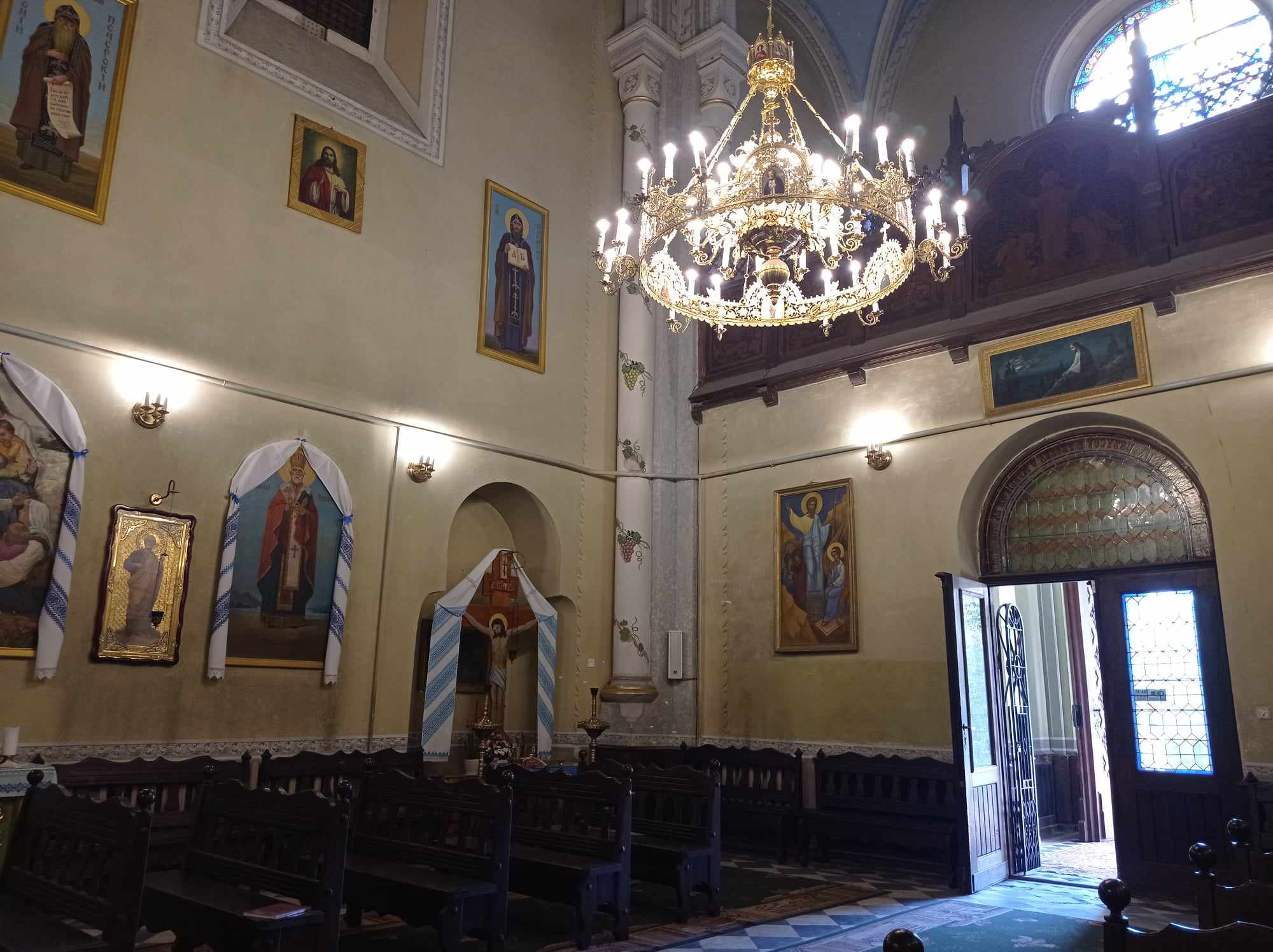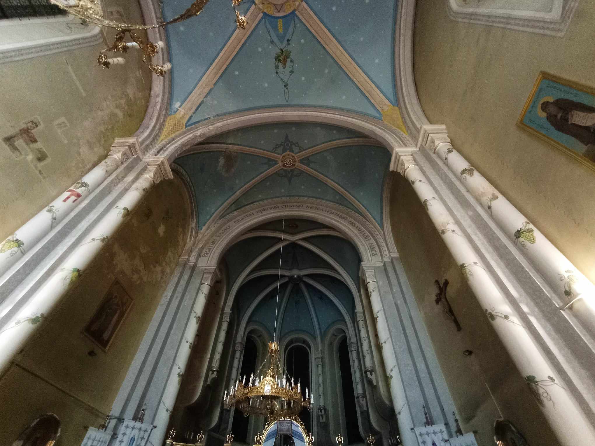 Сам храм також вражає. Хоча від оригінального його оздоблення залишилася лише автентична підлога та дерев’яна балюстрада хорів, а вітражі в апсиді закриті через воєнні дії та можливі обстріли, тут триває молитовне життя.
