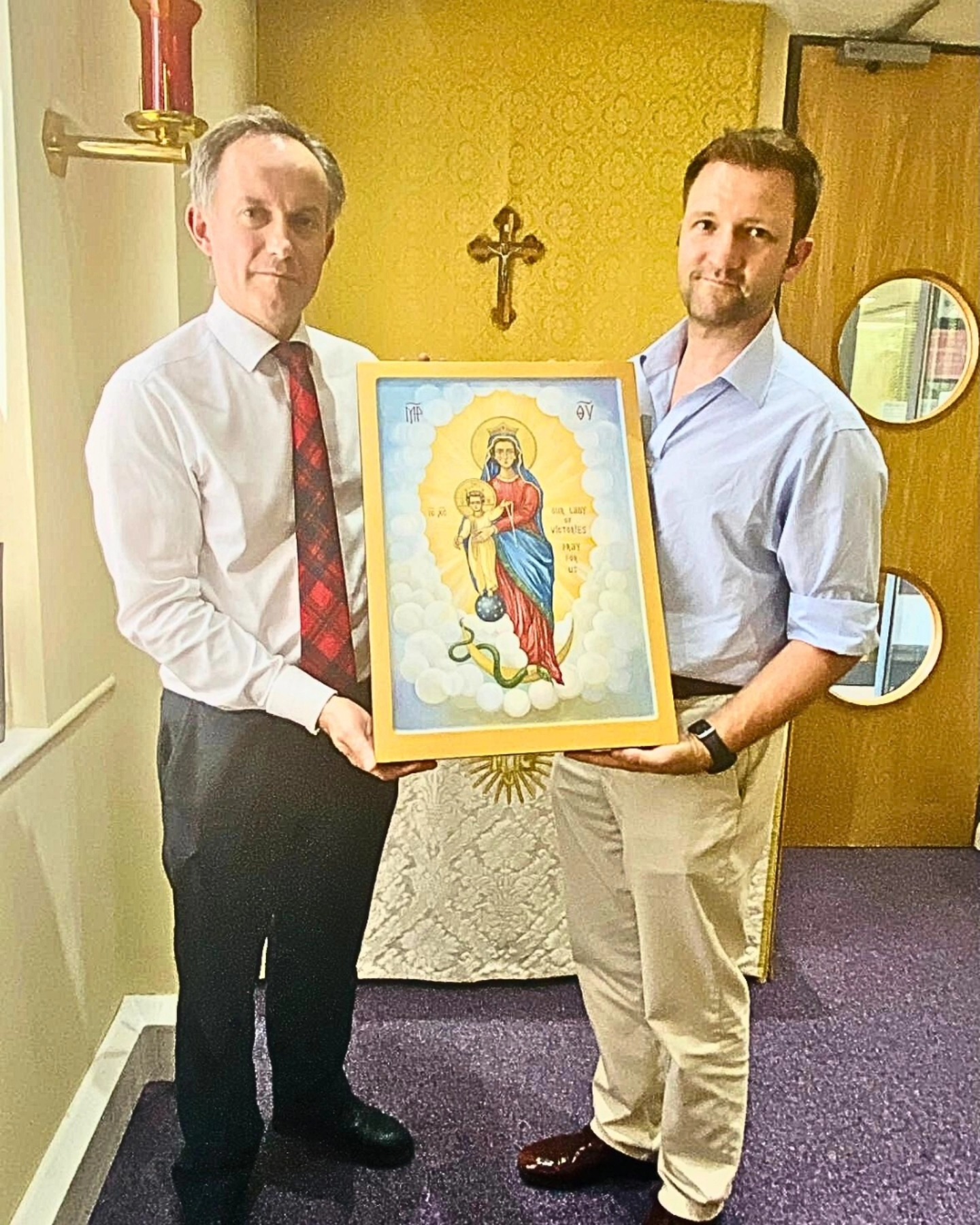 Церемонія відбулася 7 жовтня 2025 року в католицькому військовому соборі. Там було встановлено та благословенно першу в історії ікону Божої Матері Переможної, яка об’єднала українську та британську громади в солідарності. Сакральний витвір мистецтва замовила Католицька військова асоціація (CMA) за підтримки католицьких благодійних організацій «Допомога Церкві в потребі» (ACN) та «Катеніанці».