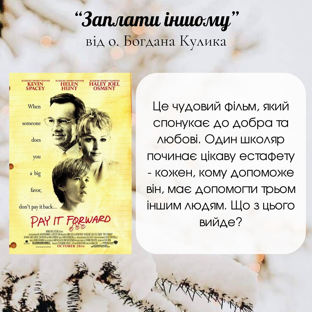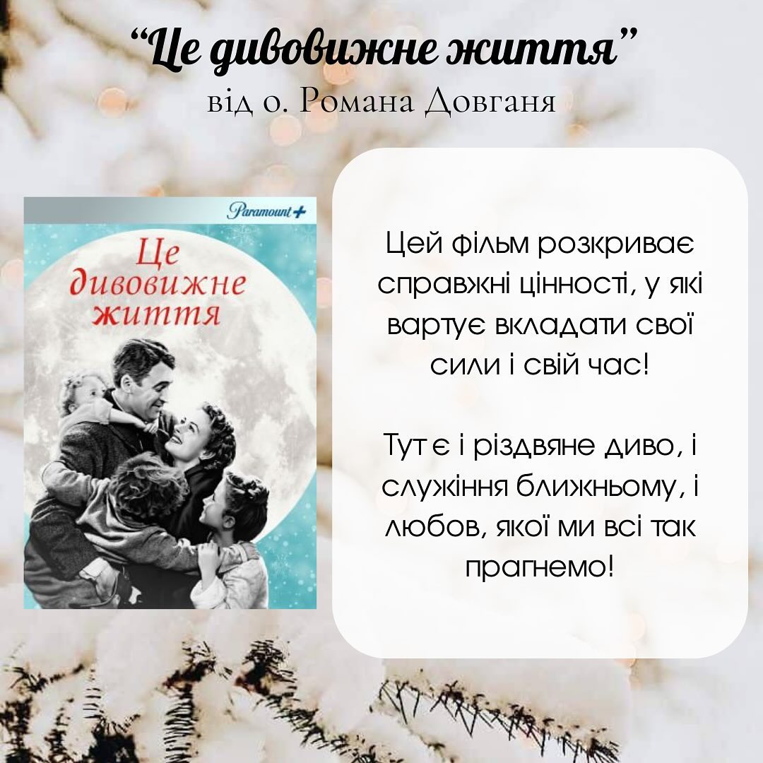 Триває час різдвяних канікул, тож капелани Центру Студентського Капеланства ЛА УГКЦ поділилися своїми думками щодо того, як студенти можуть відпочити з користю, переглянувши цікавий фільм.