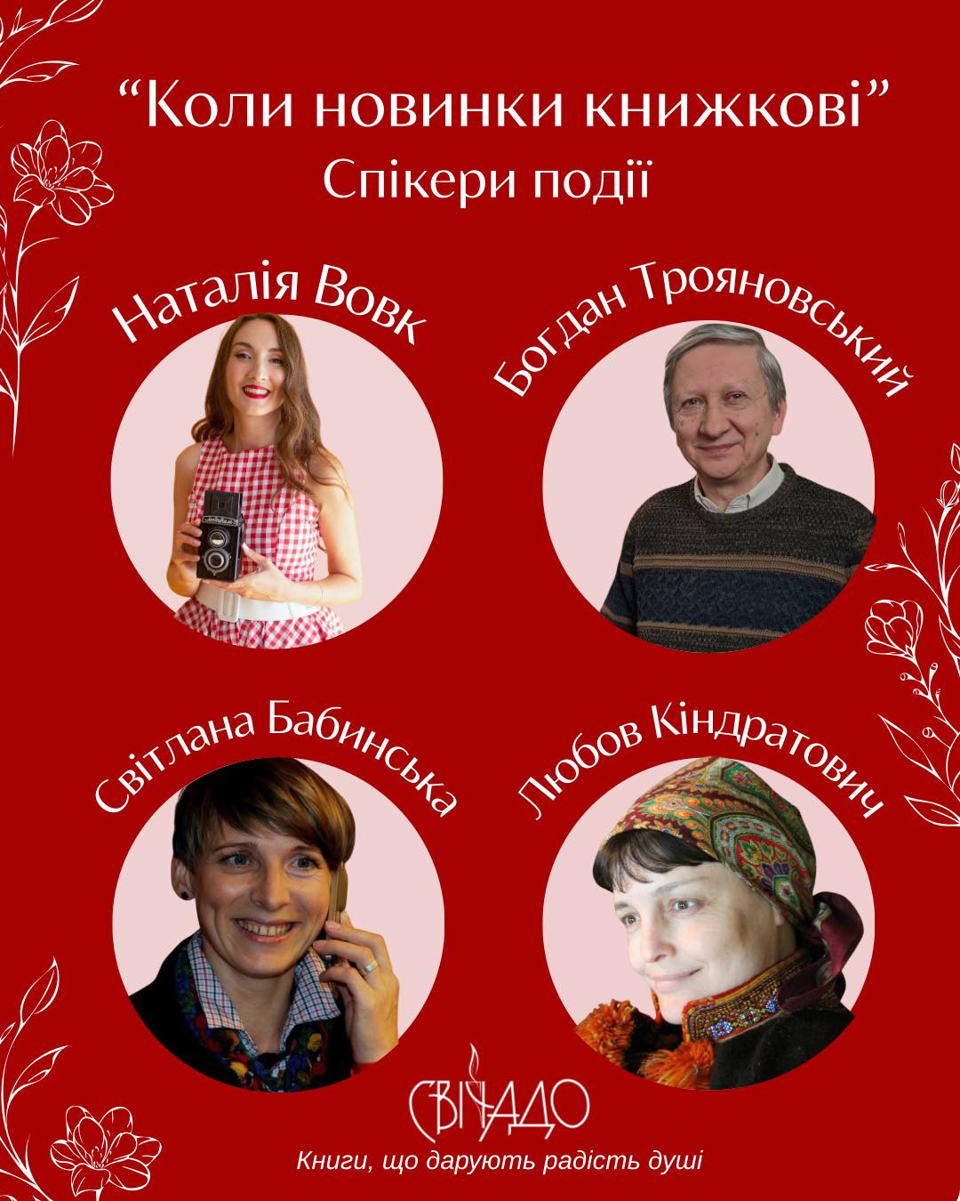 «Наші нові видання вже з’явилися у продажу і ми хочемо створити подію, щоб познайомити з ними читачів видавництва “Свічадо”. Нехай це буде чудовий момент зустрічі, коли хочеться гортати, читати й відкривати нове! І, найважливіше, набуватися разом з тими, для кого ми працюємо – з нашими читачами і з тими, хто створював ці книжки», – йдеться у повідомленні.