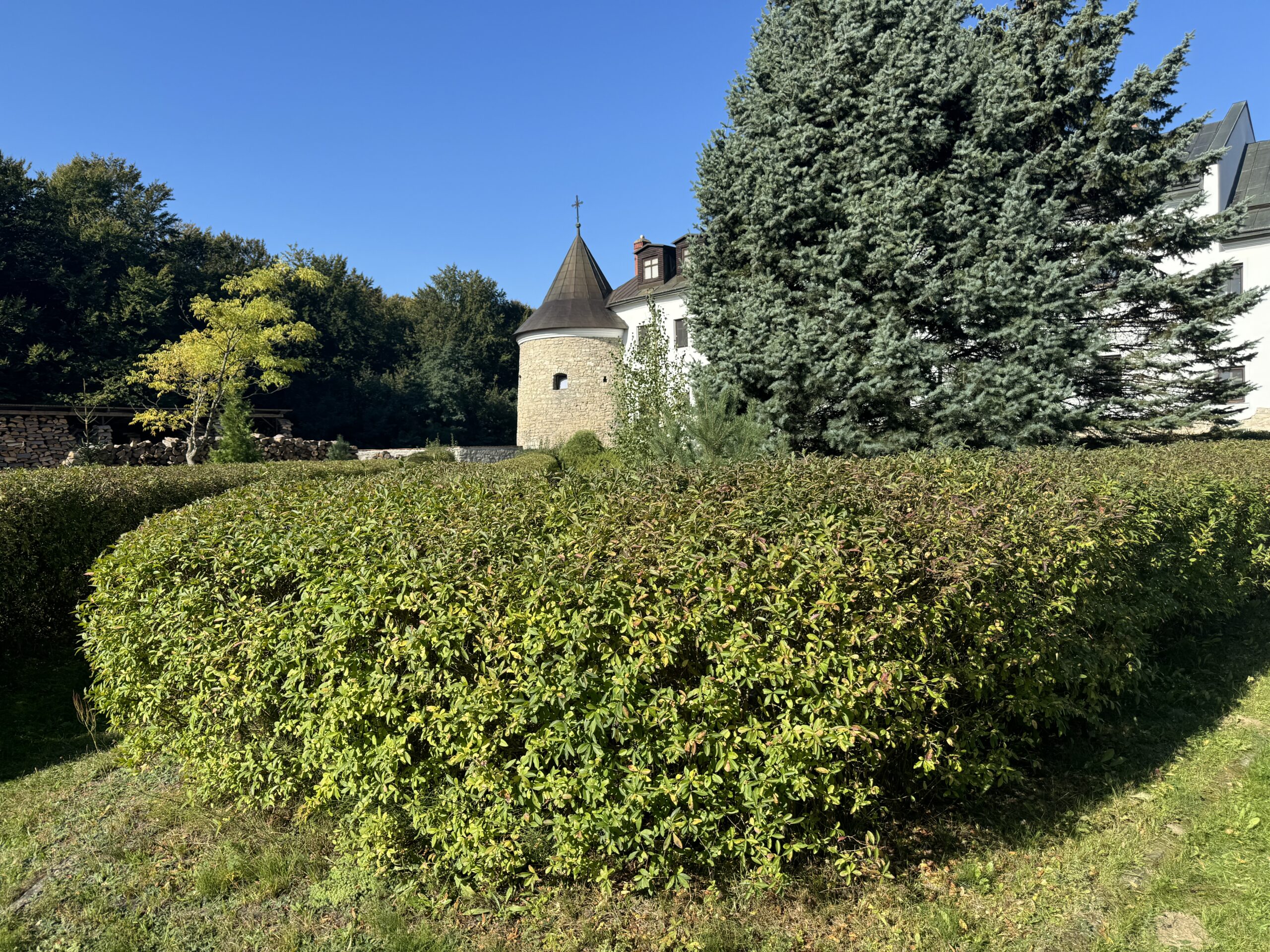 Коли виходиш з монастиря в монастирський сад, то може скластися враження, що ти бачиш перед собою Ватиканські сади. Підстрижені кущі, фруктові дерева… Чистенькі стежки поміж ними. Трохи далі — рясний виноград, а ще поруч — справжня пасіка. Схоже, на новіціяті в Крехові постійно перебувають ще й бджоли.