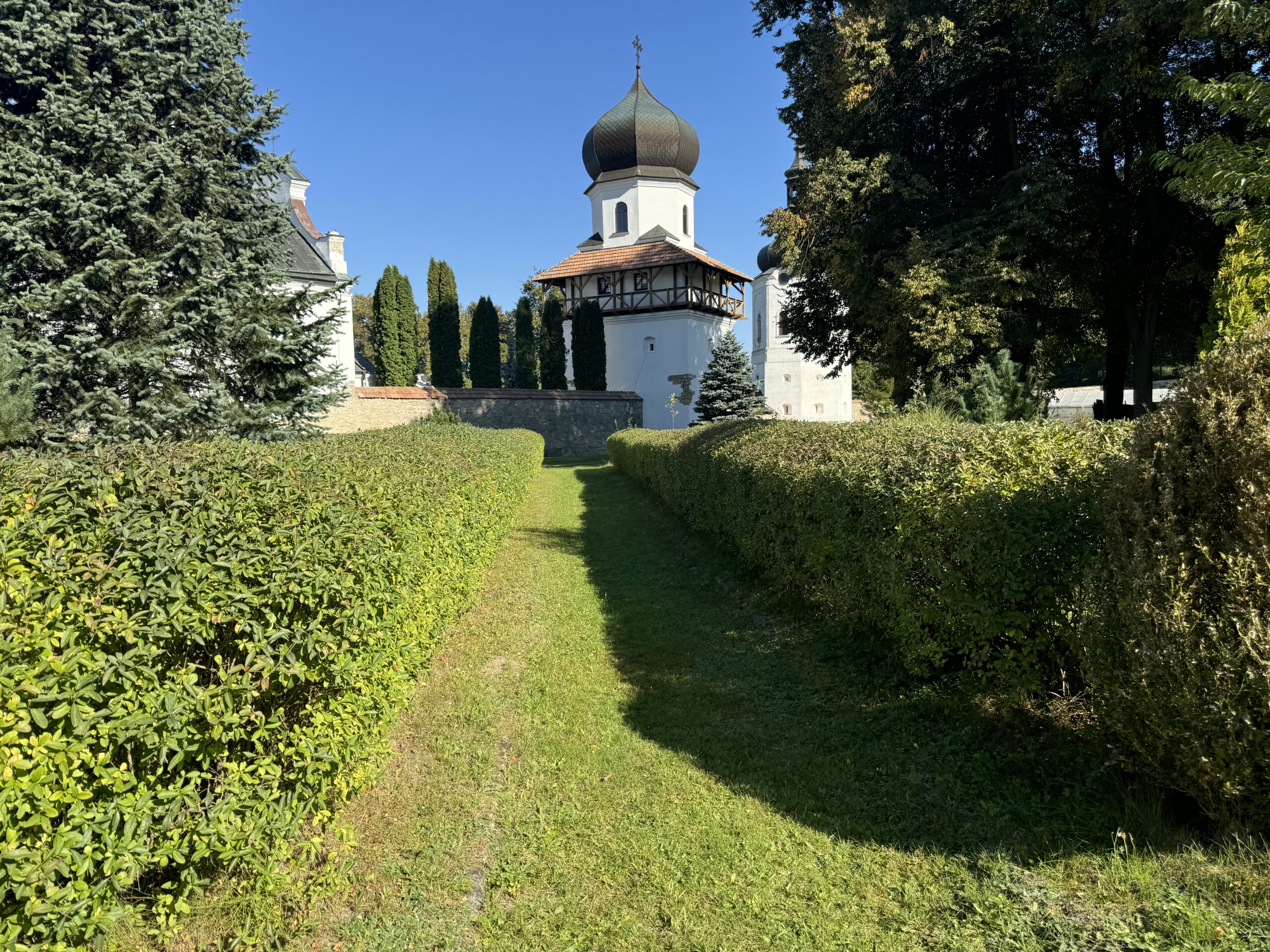Дійшовши до кінця липової алеї в монастирському саду, можна побачити невелике футбольне поле та місце для занять спортом.