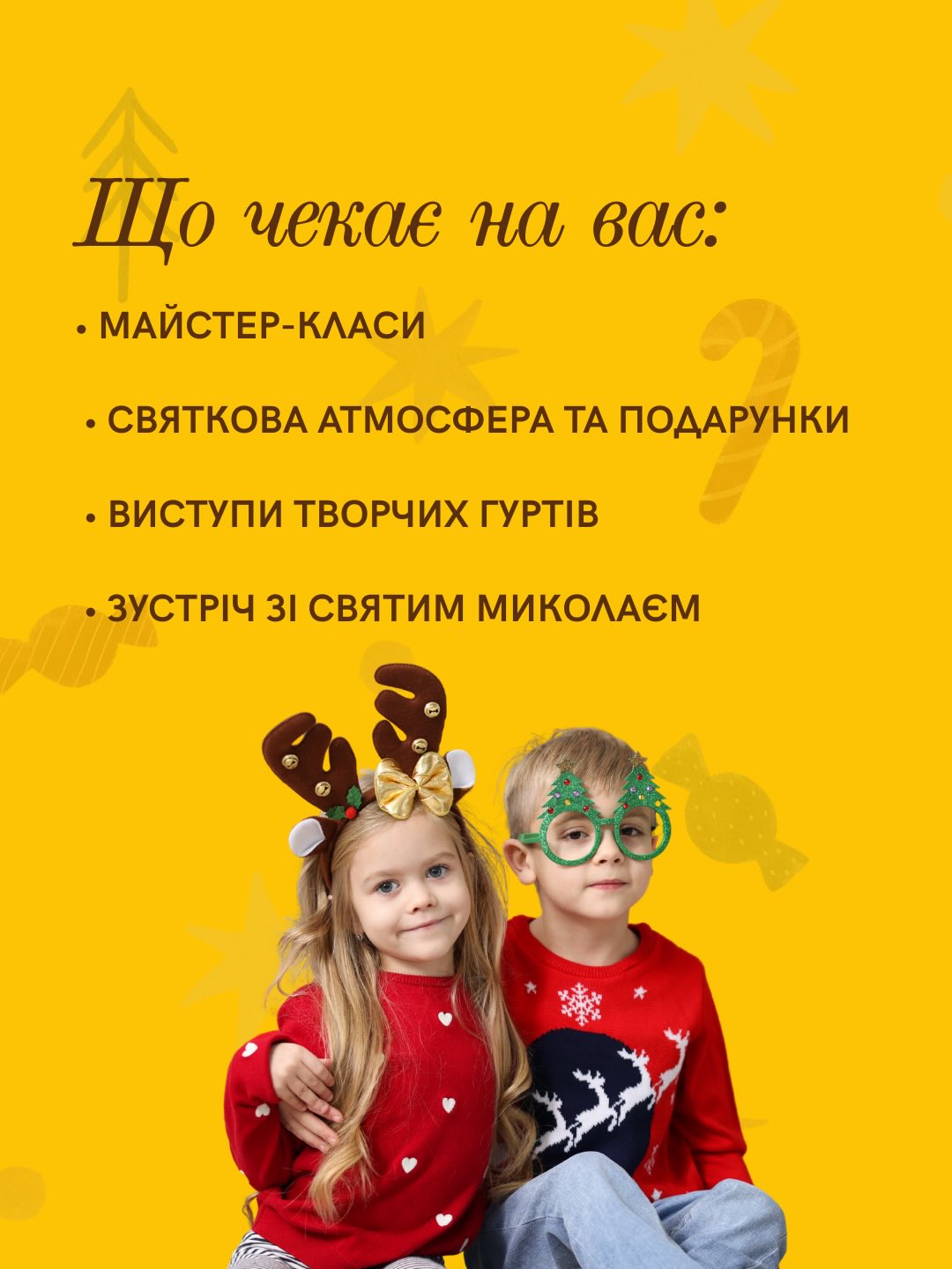 Як зазначають у повідомленні, на гостей чекатимуть майстер-класи, подарунки, творчі виступи, фудкорти, фотозона, а також зустріч зі святим Миколаєм.