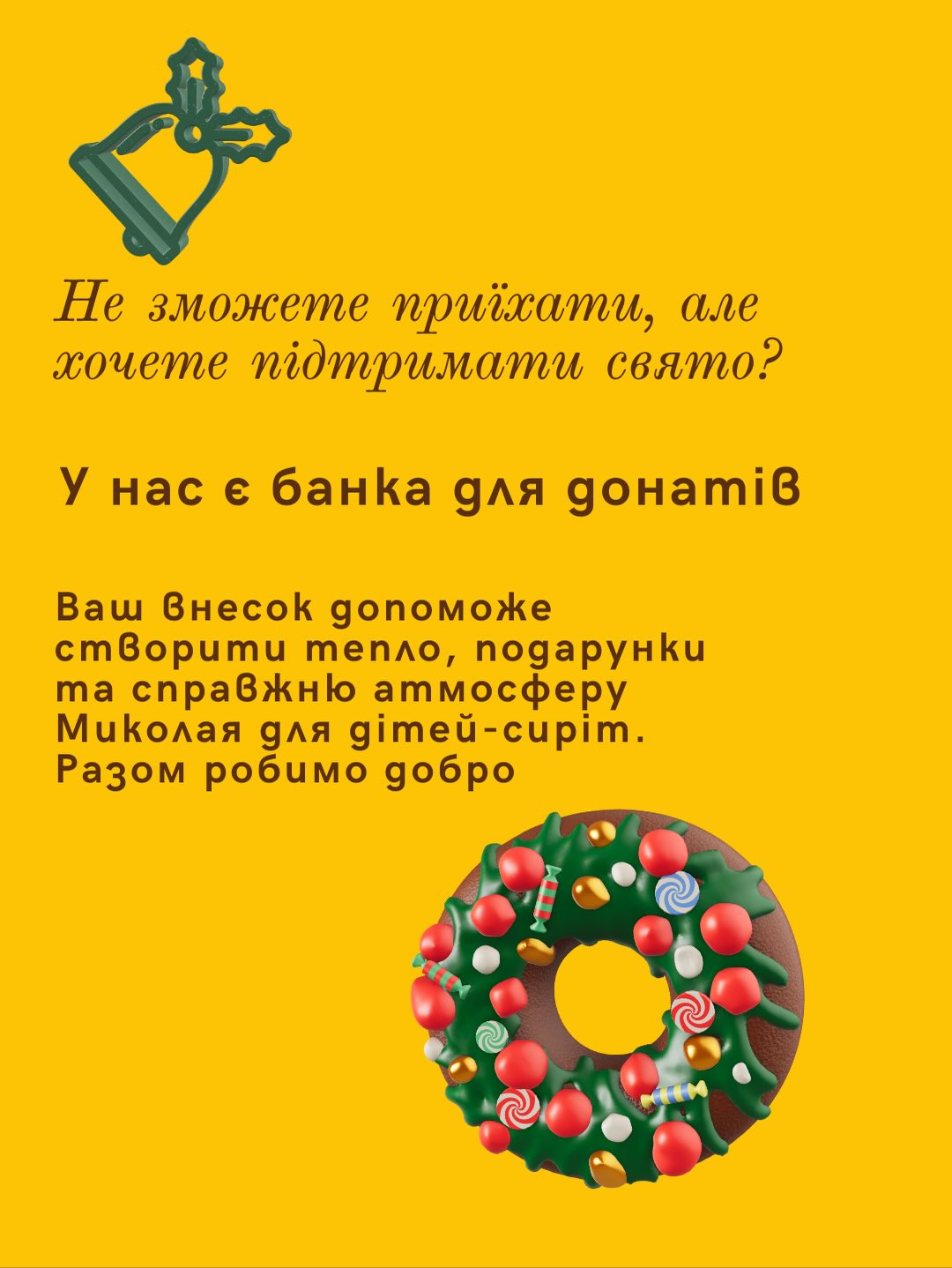 «Це свято – можливість долучитися до добра. Кожен внесок – це ще один подарунок, ще одна дитяча усмішка і ще трішки тепла для тих, хто цього потребує найбільше. Дякуємо, що творите добро разом із нами», – зазначають організатори.
