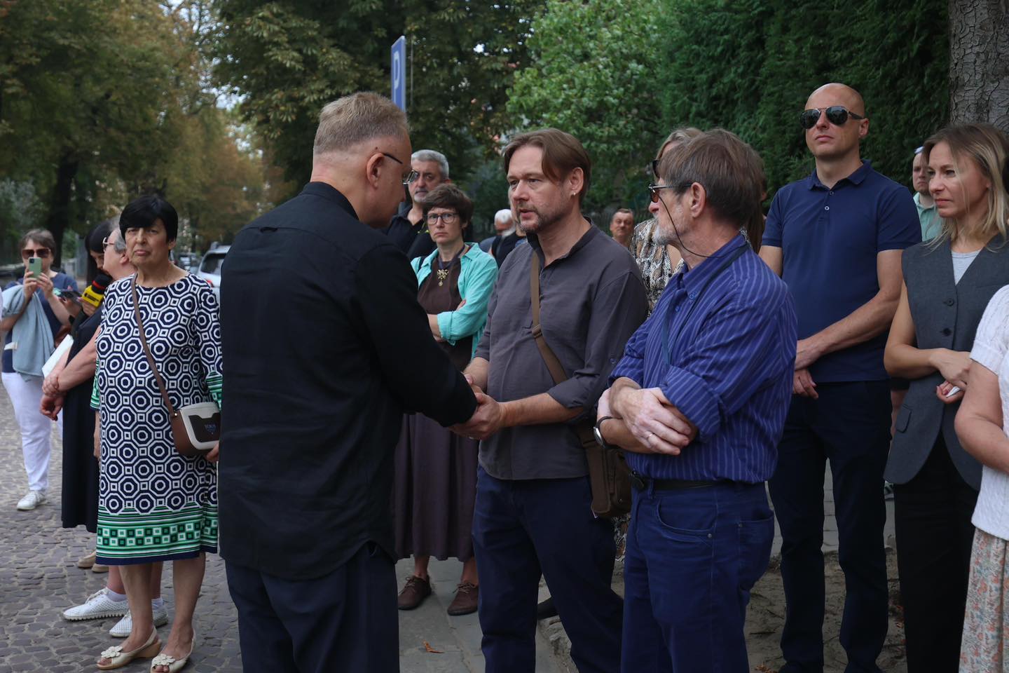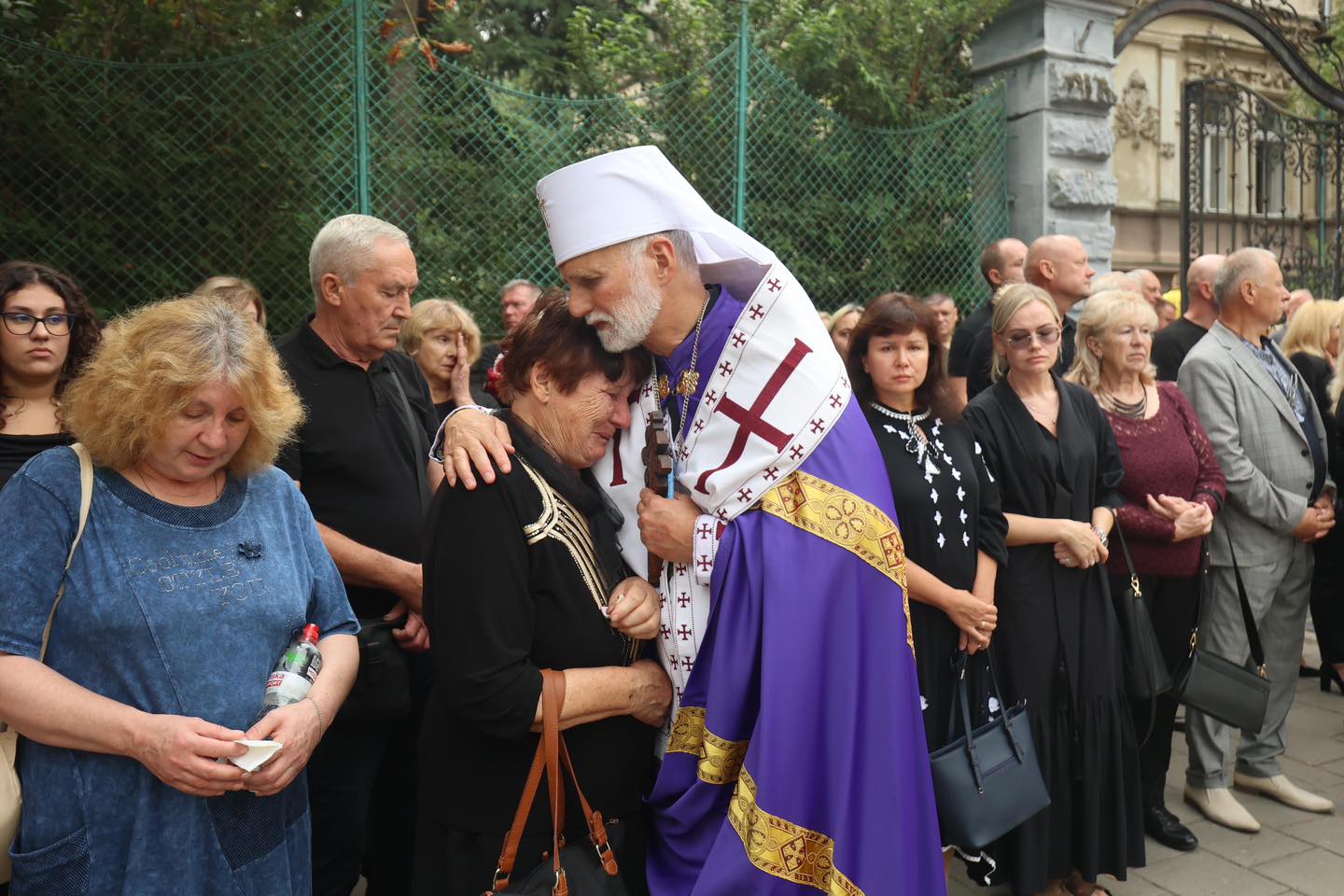 Заупокійна молитва відбулася на вулиці Коновальця, де 4 вересня 2024 року внаслідок влучання російської ракети в будинок №44 загинули Євгенія, Ярина, Дарія та Емілія Базилевичі.