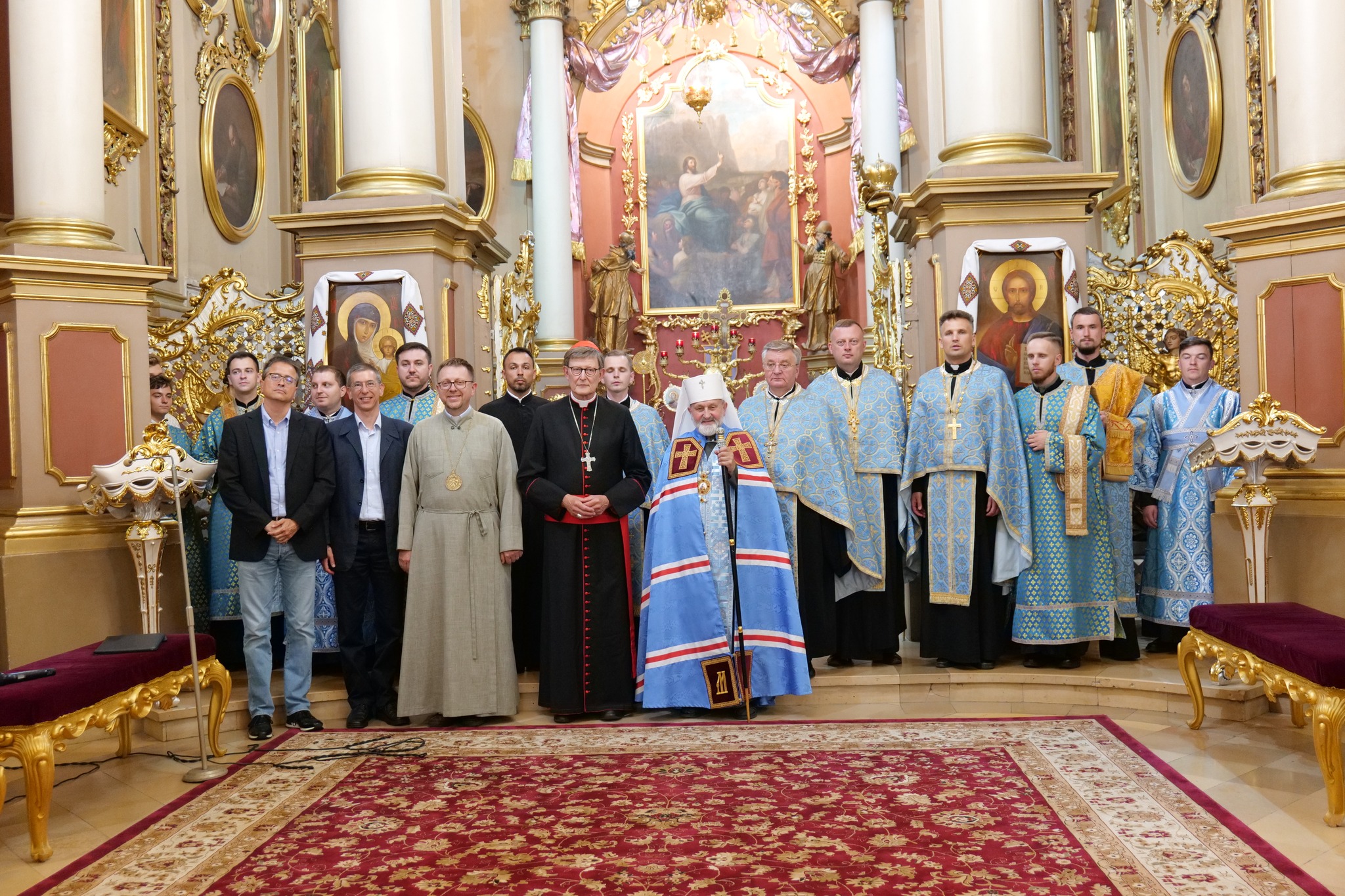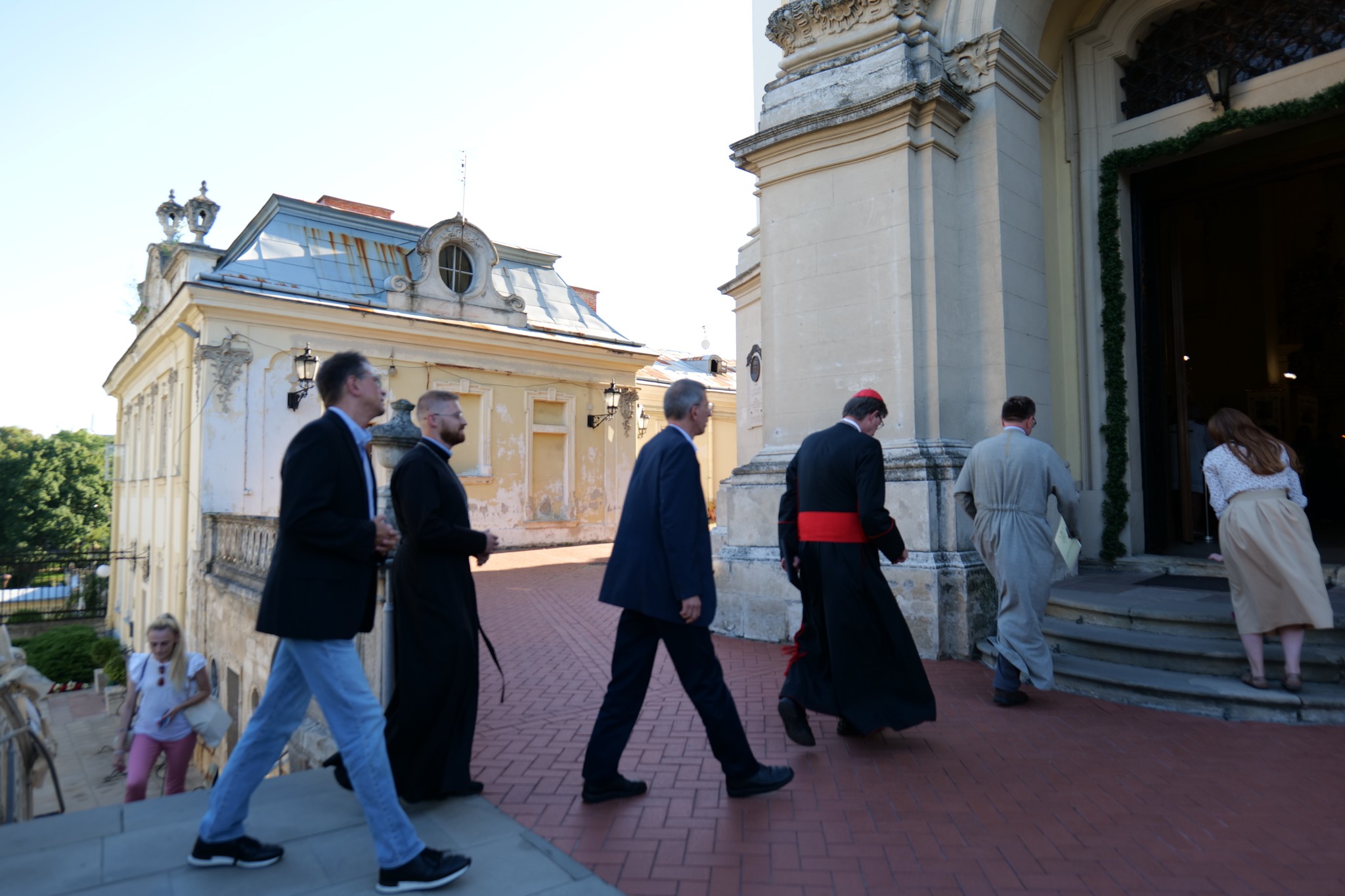 Свій візит німецький кардинал розпочав зі Львова, побувавши на Вечірні у катедральному соборі св. Юра. Фотографії відвідин були оприлюднені на фейсбук-сторінці Львівської Архиєпархії УГКЦ.