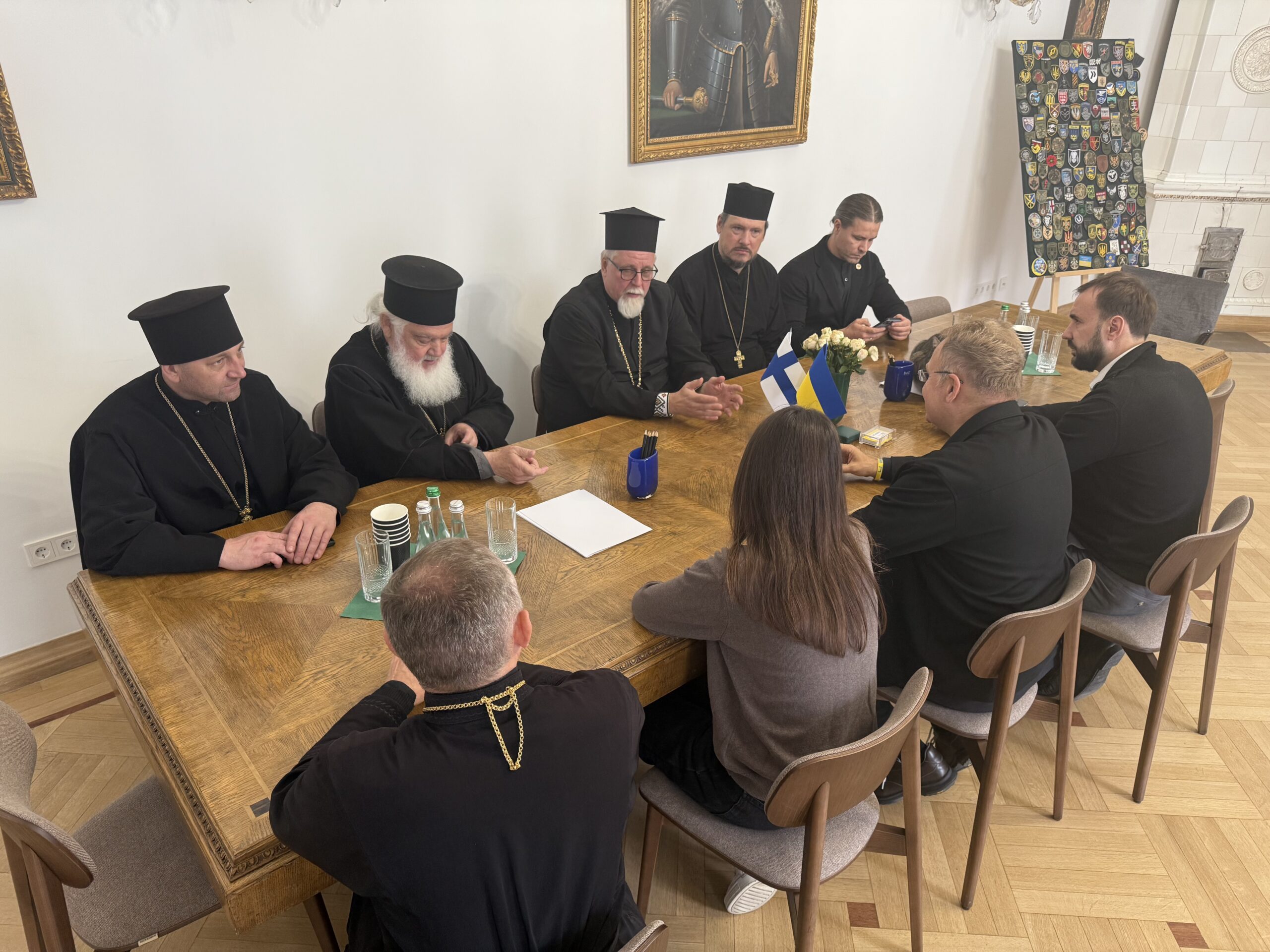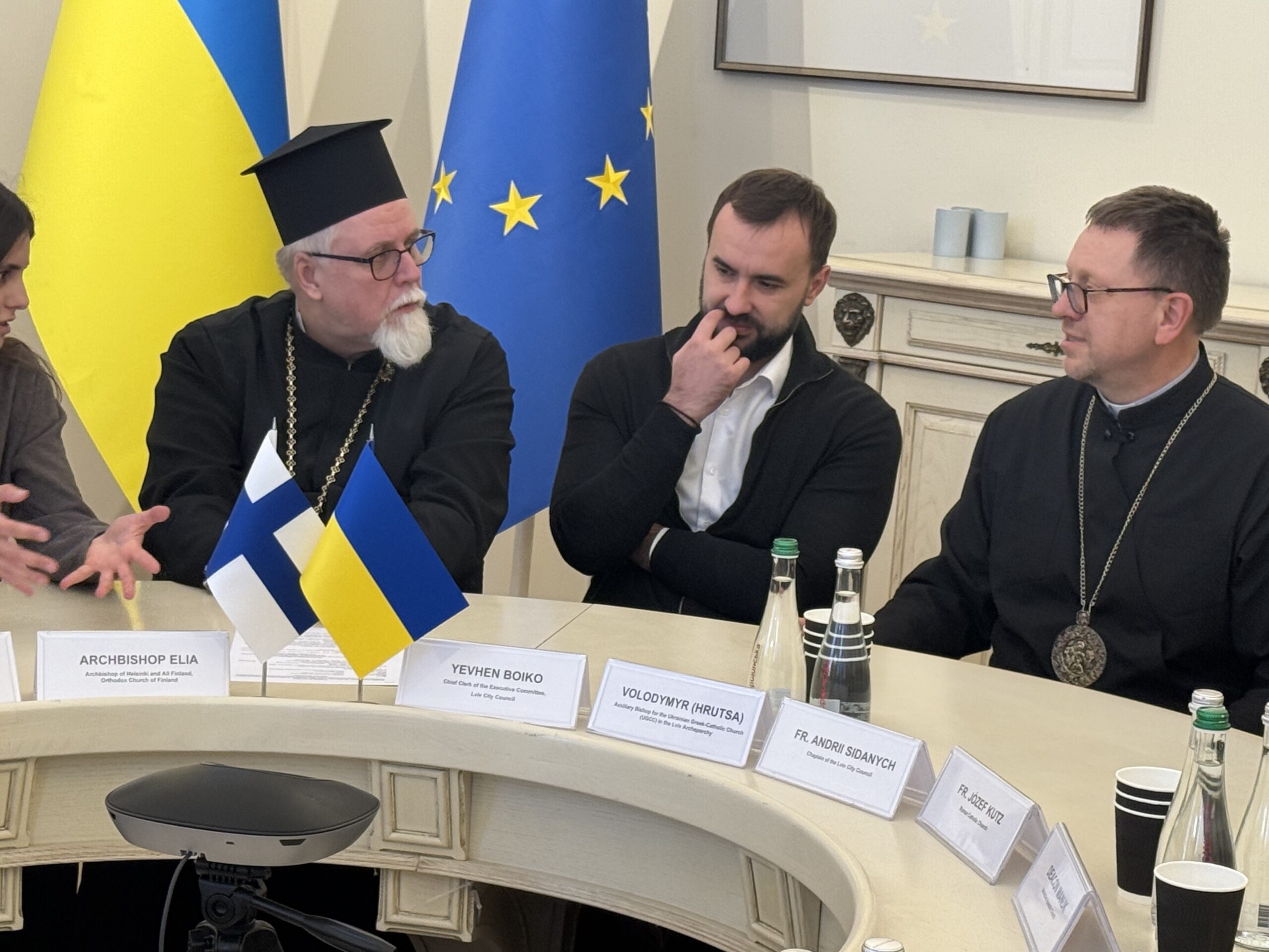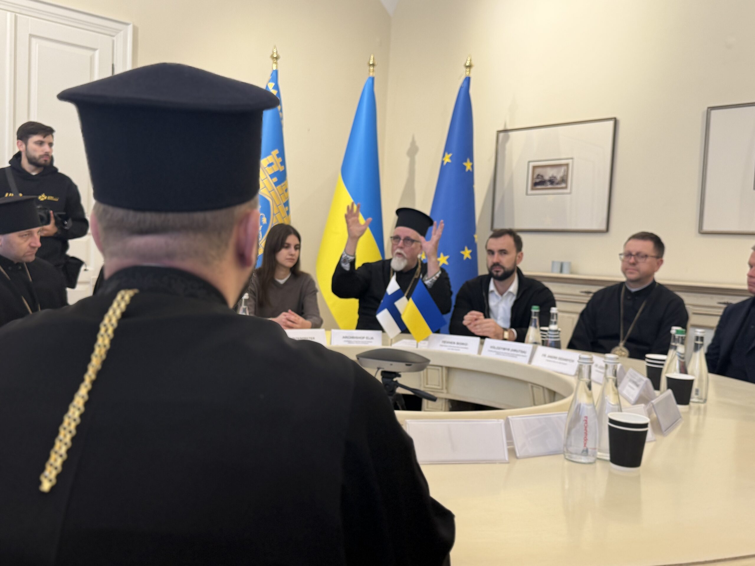 За круглим столом у Білій залі Ратуші Предстоятель Фінської Церкви розповів про свої враження від візиту в Україну та обмінявся думками з представниками Львівської ради Церков.