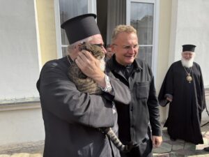 Архієпископ Елія і Андрій Садовий продовжили спілкування на балконі Ратуші, де обмінялись подарунками, а фінський гість визнав, що любить котів, у нього їх аж два. До речі, фінською кіт буде “кісса”.