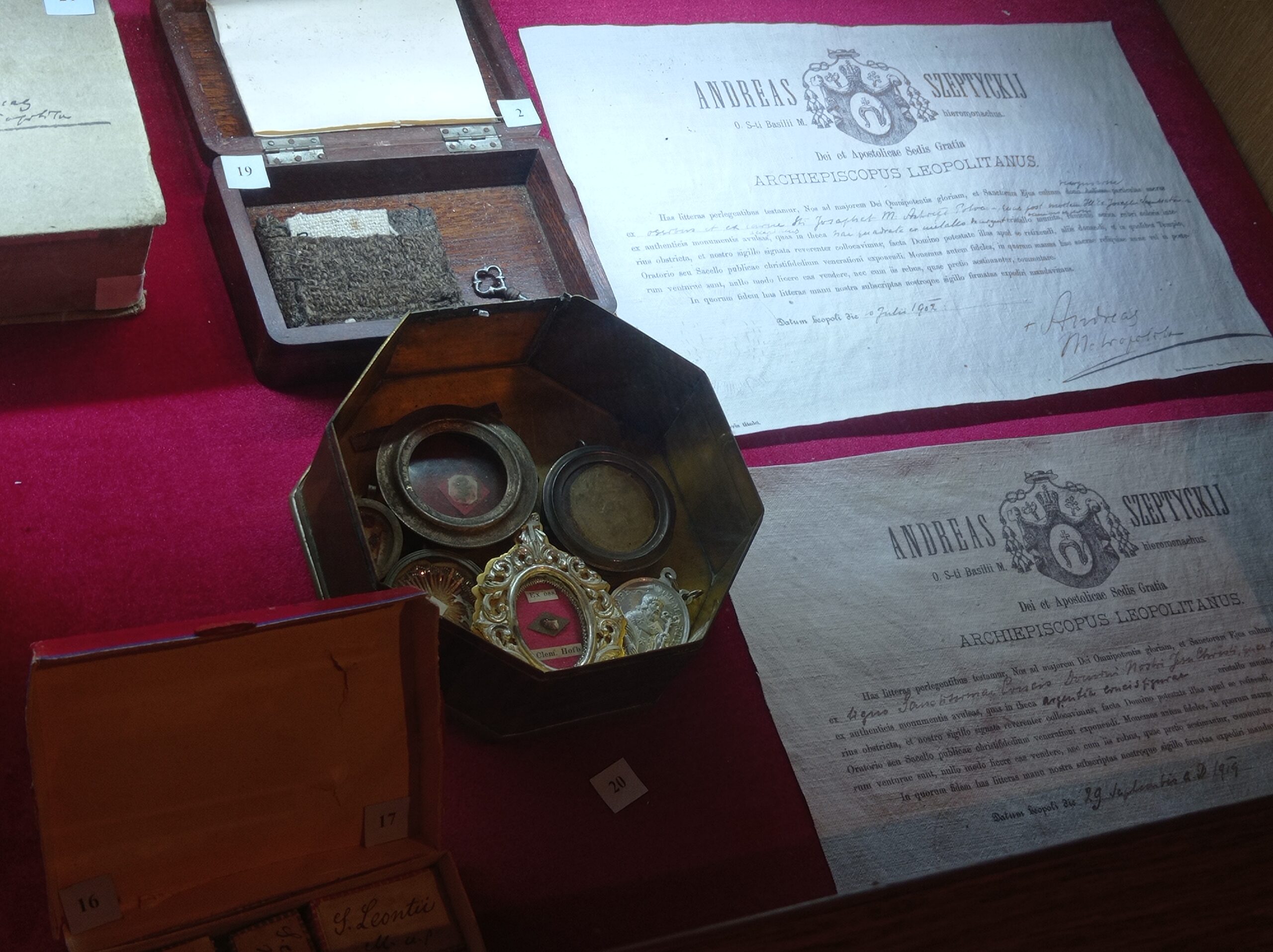 Загалом фонд музею налічує близько 500 особистих пам’яток владики Андрея. Серед них – одяг, книги, автентичні речі, наприклад, ікони з митрополичих палат, а ще – столик, на якому Митрополит служив Літургію, коли не міг ходити, підсвічники, літургійний набір у кивоті тощо.