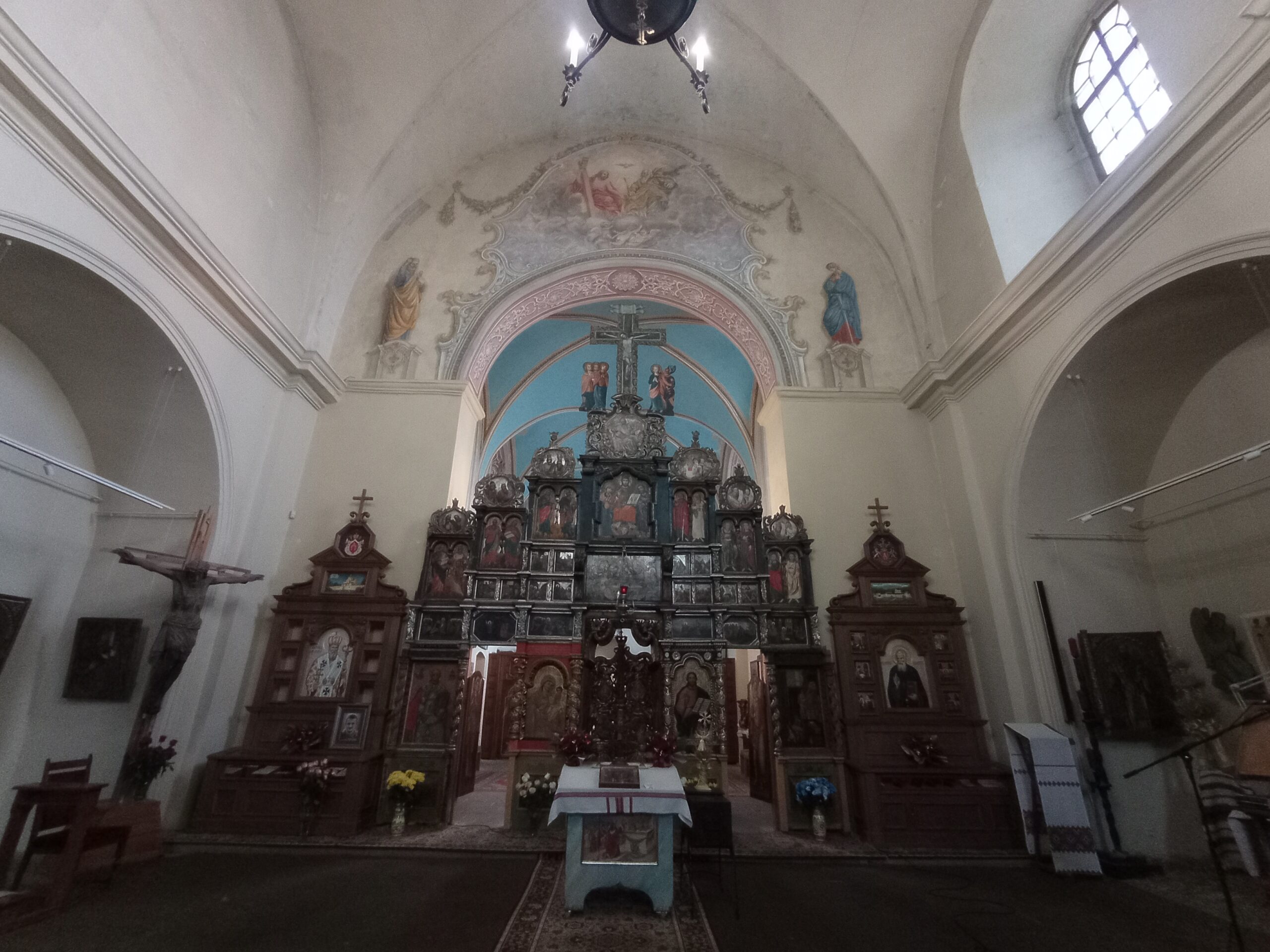 «В храмі ми тільки віднайшли фреску Пресвятої Трійці над святилищем. Правдоподібно, що це може бути робота італійського майстра Антоніо Падретті, який розписував недалеко костел кармелітів, де нині монахи-студити (сучасний храм святого Архистратига Михаїла на вул. Винниченка, 22, прим. ДВЛ); це тільки та частина, до якої не дістали вандали, щоби оббити штукатурку. А решту, що було розписано на стінах – не можу сказати, бо штукатурки я не застав. Я маю документи зі зафіксованими знимками, що, коли я прийшов, у храмі не було тиньку», – розповів священник.