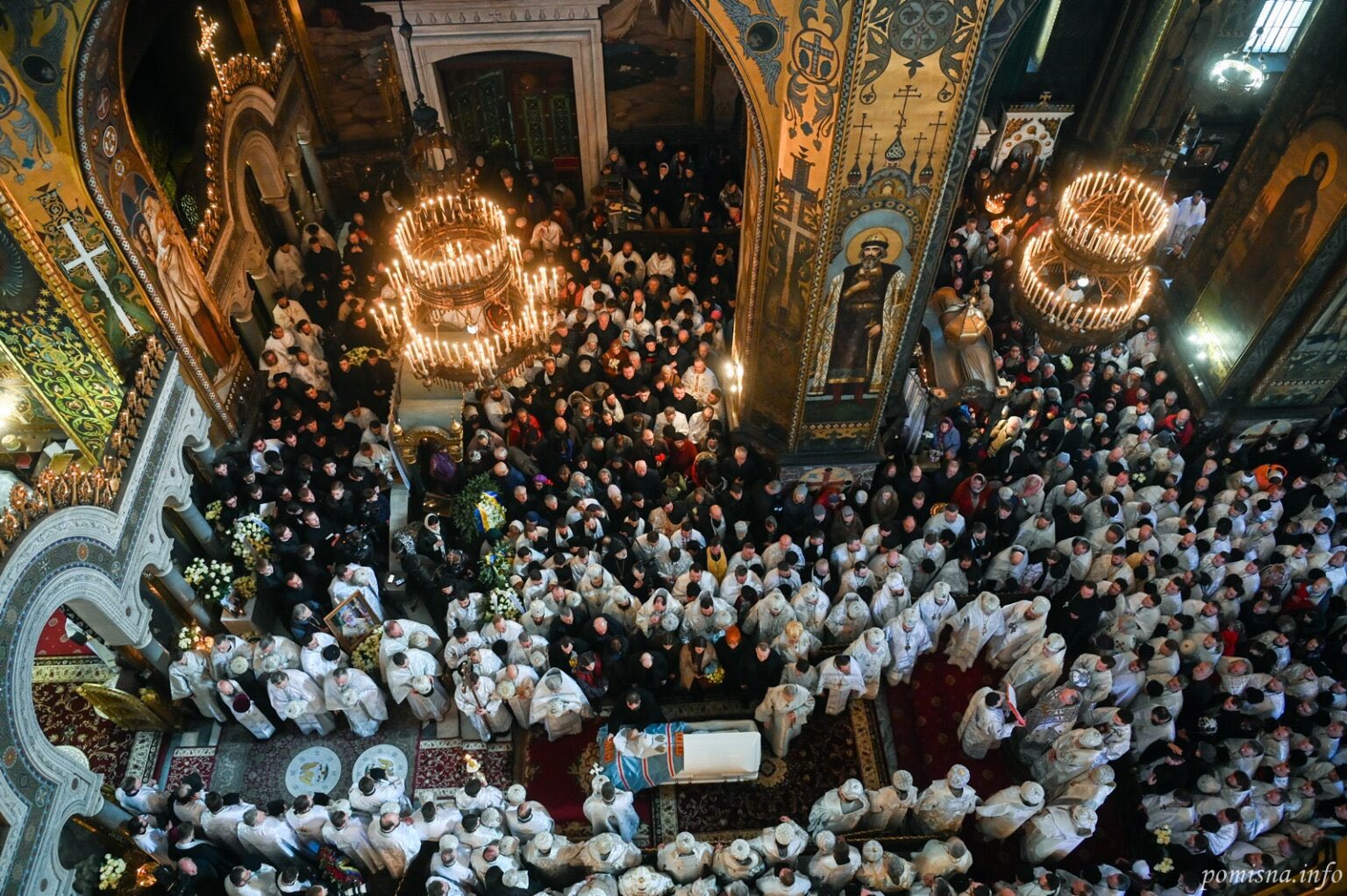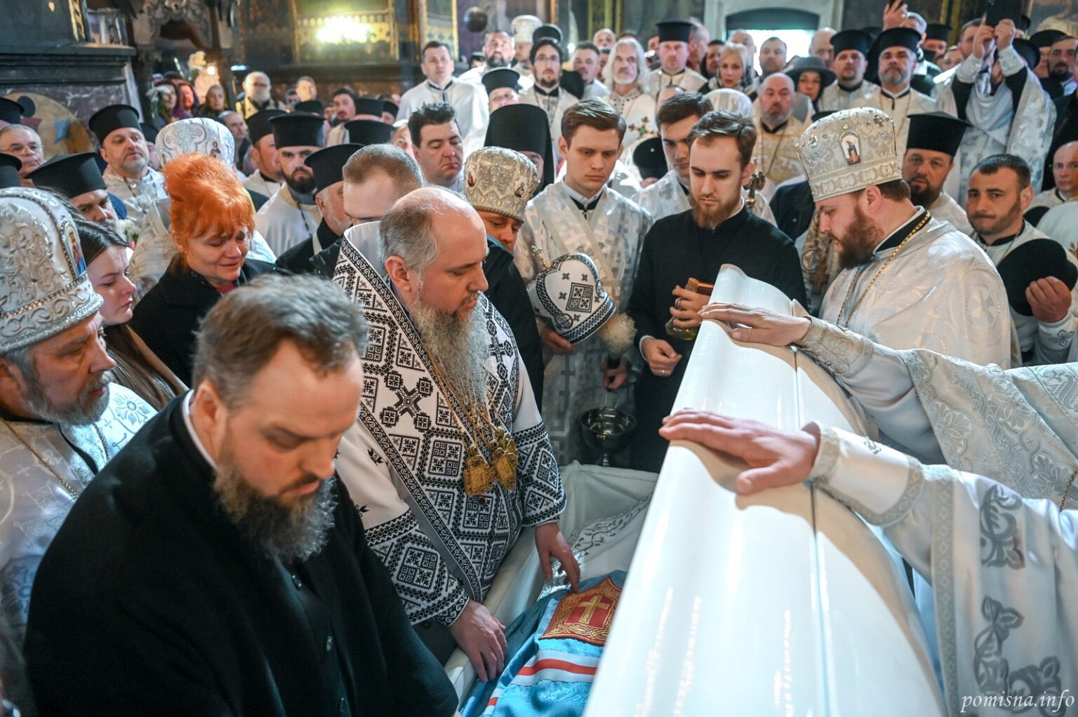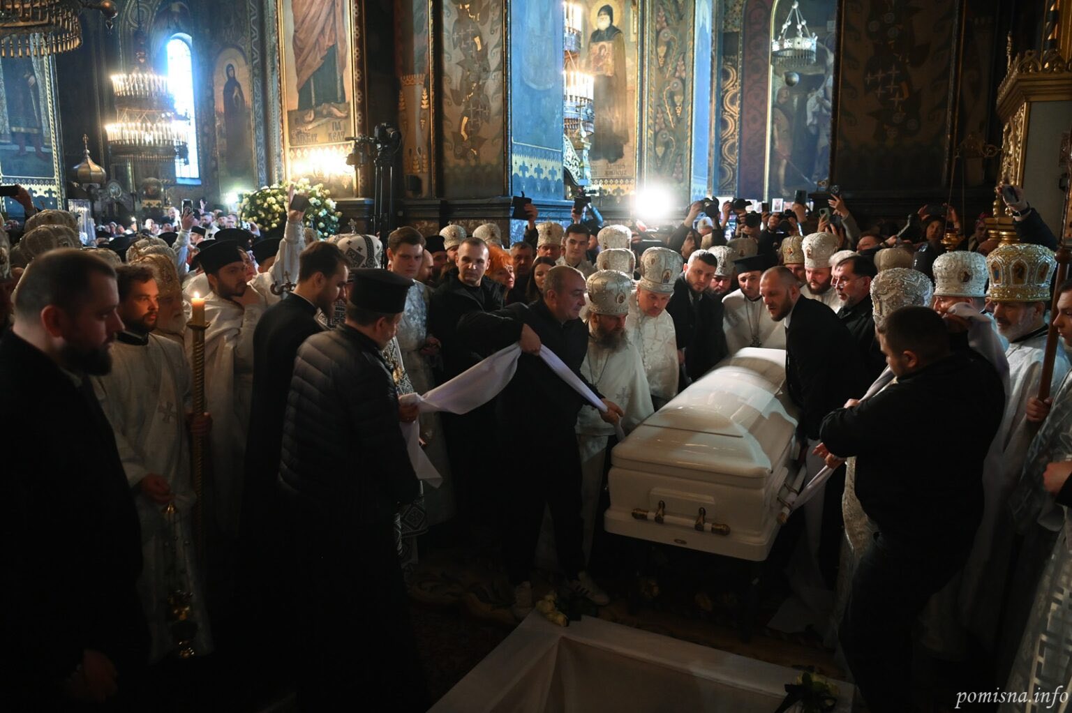 По завершенні Літургії до Володимирського собору прибула процесія з тілом Патріарха Філарета. Тут Предстоятель ПЦУ Блаженніший Епіфаній завершив чин похорону. Патріарха Філарета, згідно з його волею, поховали у Володимирському соборі.