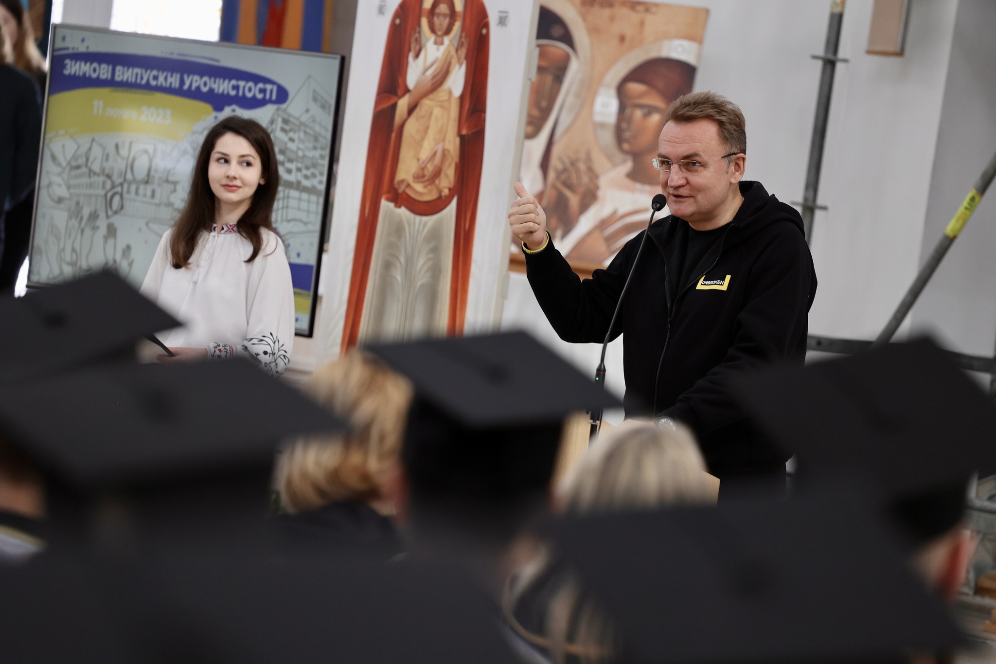У суботу, 11 лютого, міський голова Львова Андрій Садовий привітав випускників Українського католицького університету UCuniversity із завершенням навчального періоду.