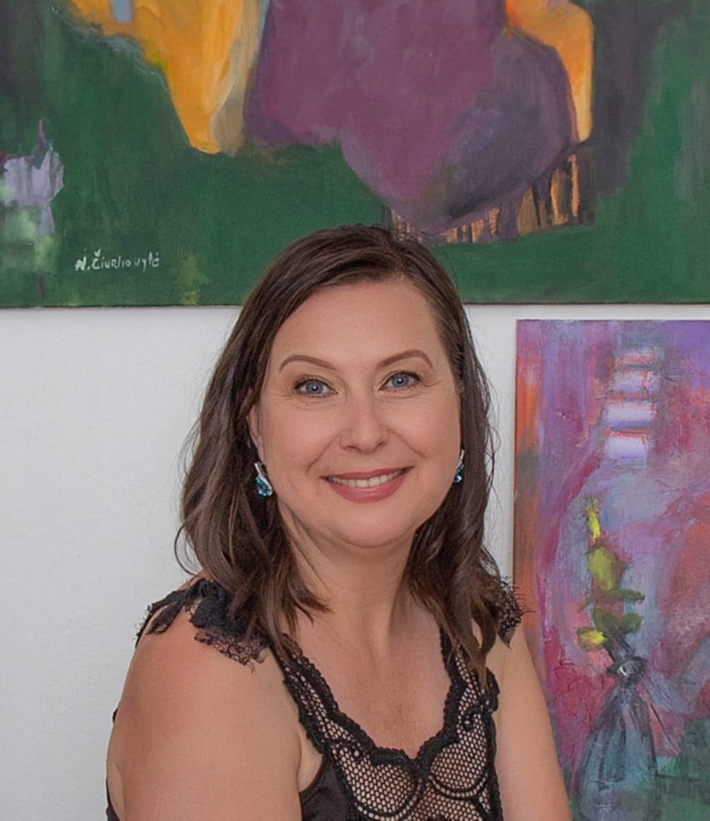 Номеда Чюрльоніте народилась у Литві, потім навчалась і працювала в Англії. Вже 15 років художниця разом з чоловіком і доньками живе в Україні.