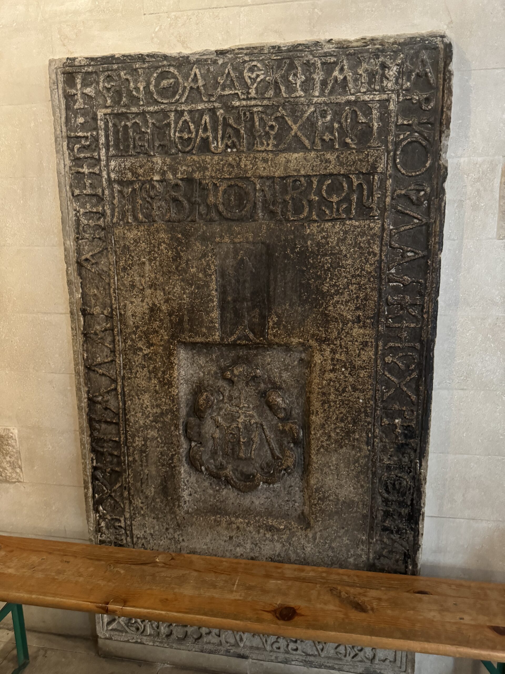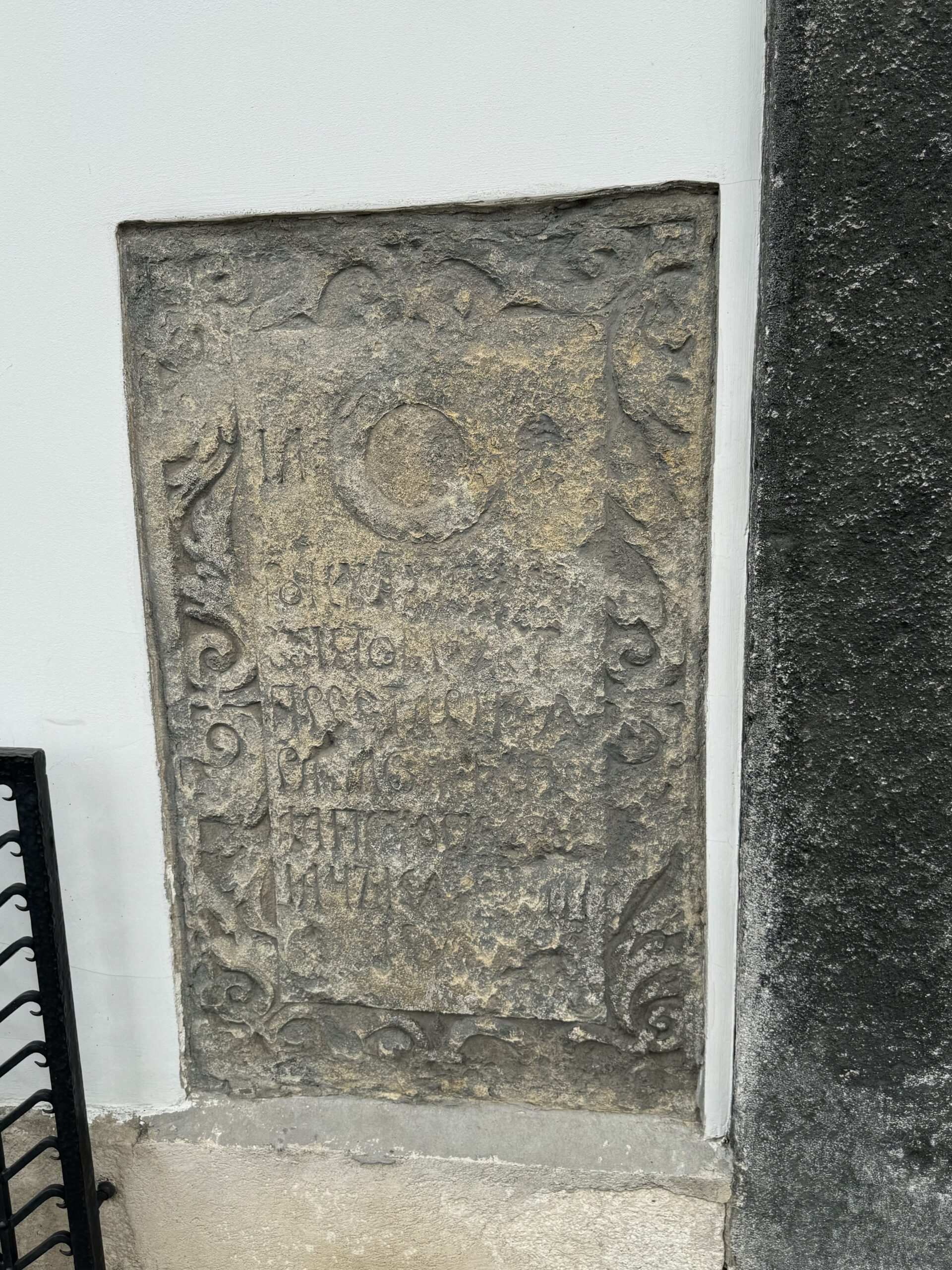 Плити на фасаді храму – із цвинтаря. Можливо, їх перемістили у XVIII ст., щоб вшанувати пам’ять заслужених людей: добродіїв, меценатів.