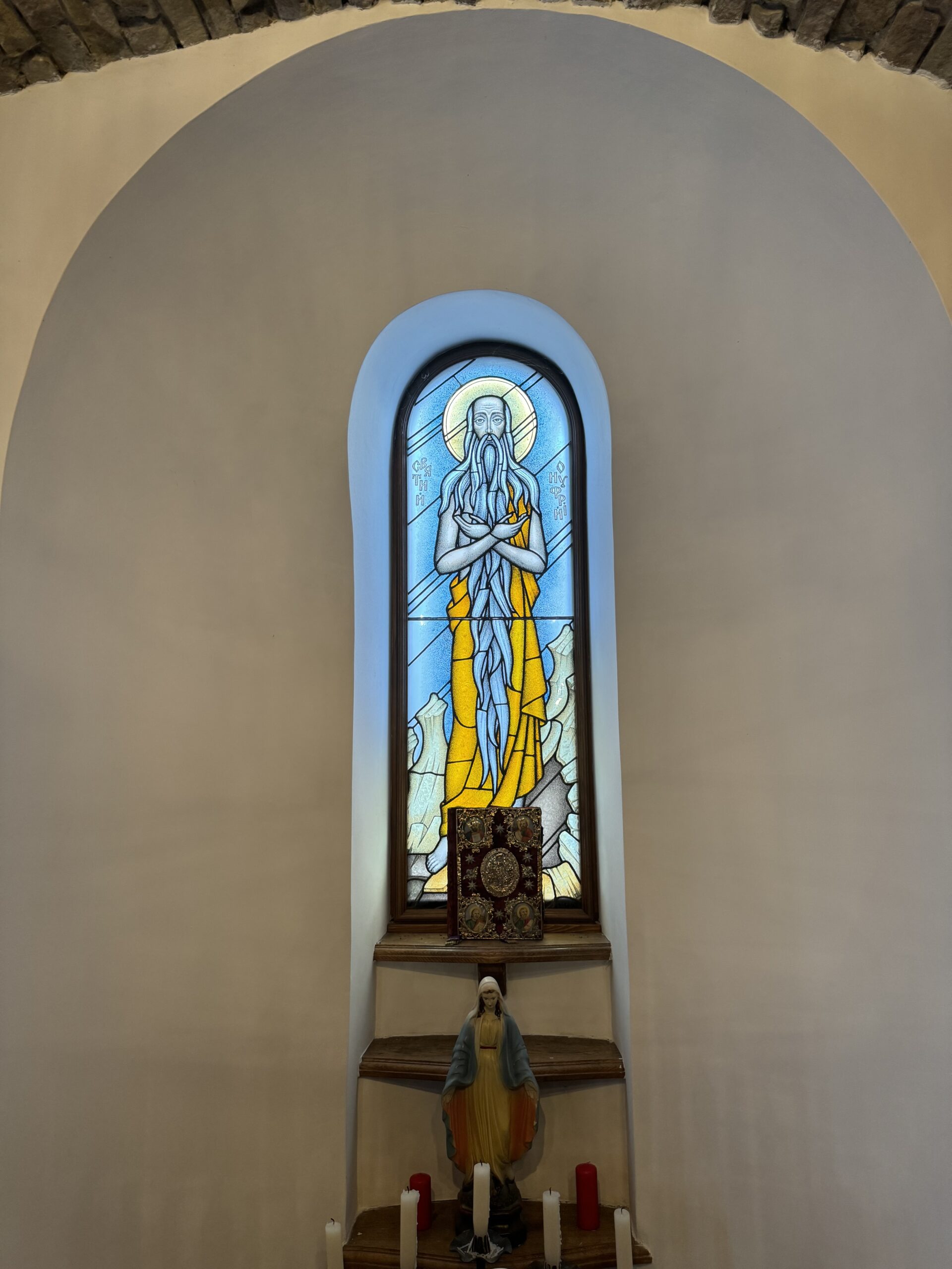 Може виникнути запитання: чому? Справа в тому, що св. Онуфрій є покровителем монашого життя, а отже, – прикладом до наслідування! І ця древня обитель, в якій ми зараз перебуваємо, названа на честь цього великого святого. До Другої світової війни перед головним входом в невеличкій печері під дзвіницею містилася маленька фігура св. Онуфрія. Тепер її вже немає – у 90-х роках ХХ ст. внаслідок реконструкції сходів печеру розширили, а на камені зобразили Христа, який молиться в Оливному саду. Люди, ідучи вулицею, тут хрестяться і моляться.
