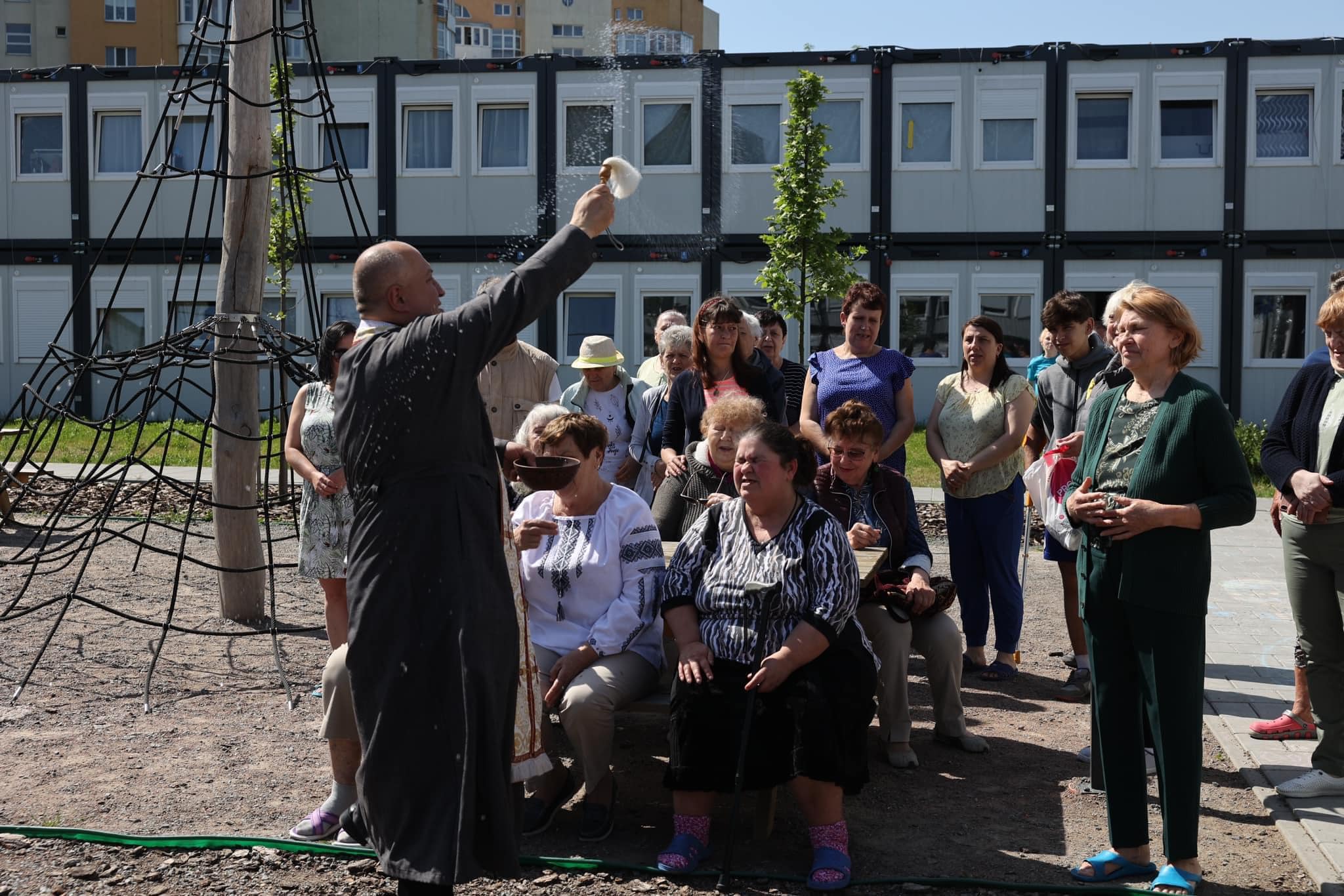 На Великдень вимушено переселені українці молилися у Львові за захисників та перемогу України. До заходу, який відбувся в модульному містечку на Сихові, долучився міський голова Андрій Садовий з дружиною.