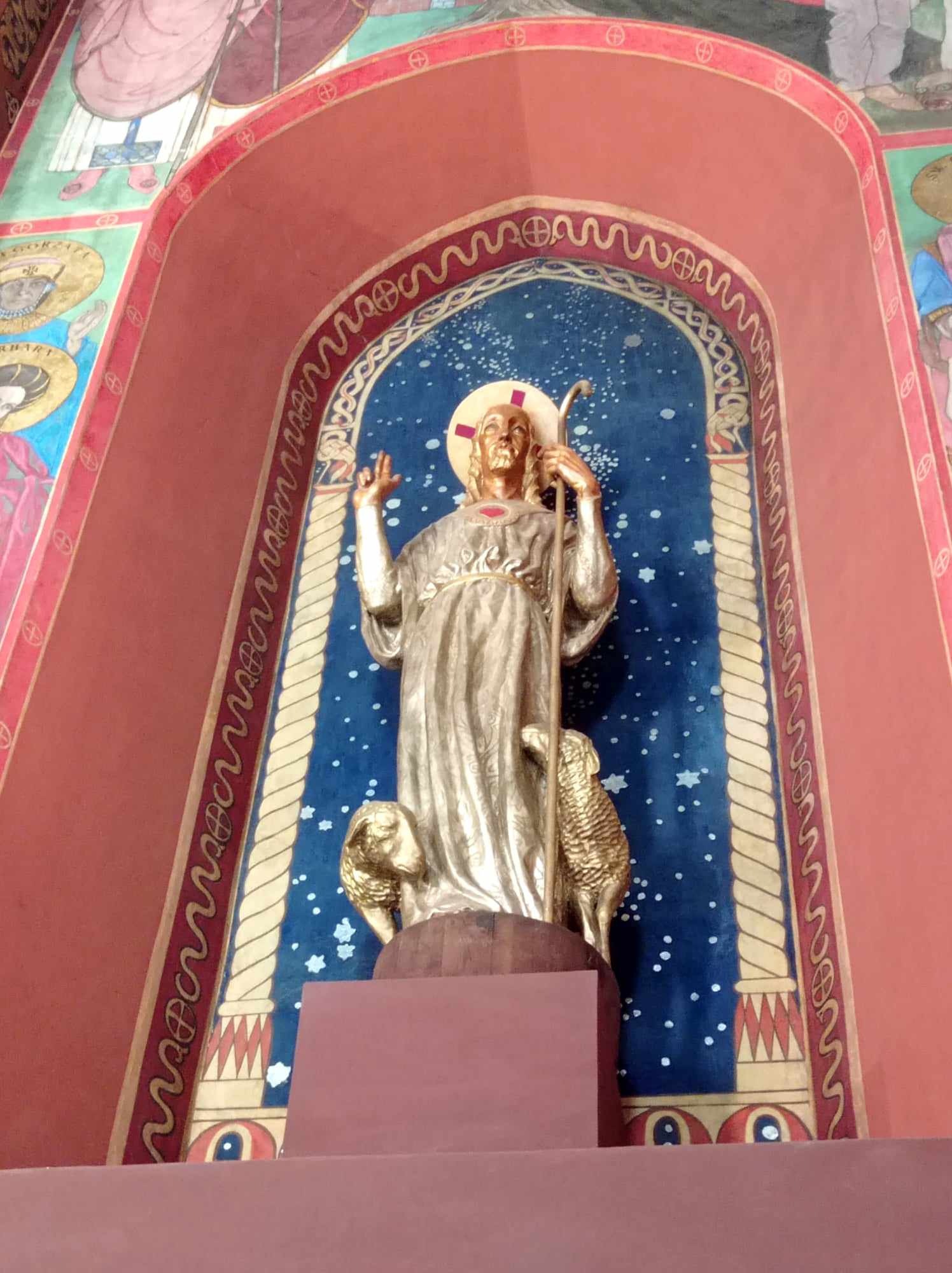 Під куполом над входом виконано фреску «Христос – Добрий Пастир», що є імітацією мозаїки VII ст. з церкви Сант-Аполлінаре-Нуово в м. Равенна (Італія). Мозаїки в храмі виконав Юзеф Мехоффер у 1913 році, сецесійні фрески написав 1925-1930 Ян Генрік Розен. Скульпторка Софія Розен створила дерев’яну статую Христа, а Ядвіга Городецька – два вівтарі в стилі ар-деко, де зараз зберігаються чудотворні ікони кафедрального собору.