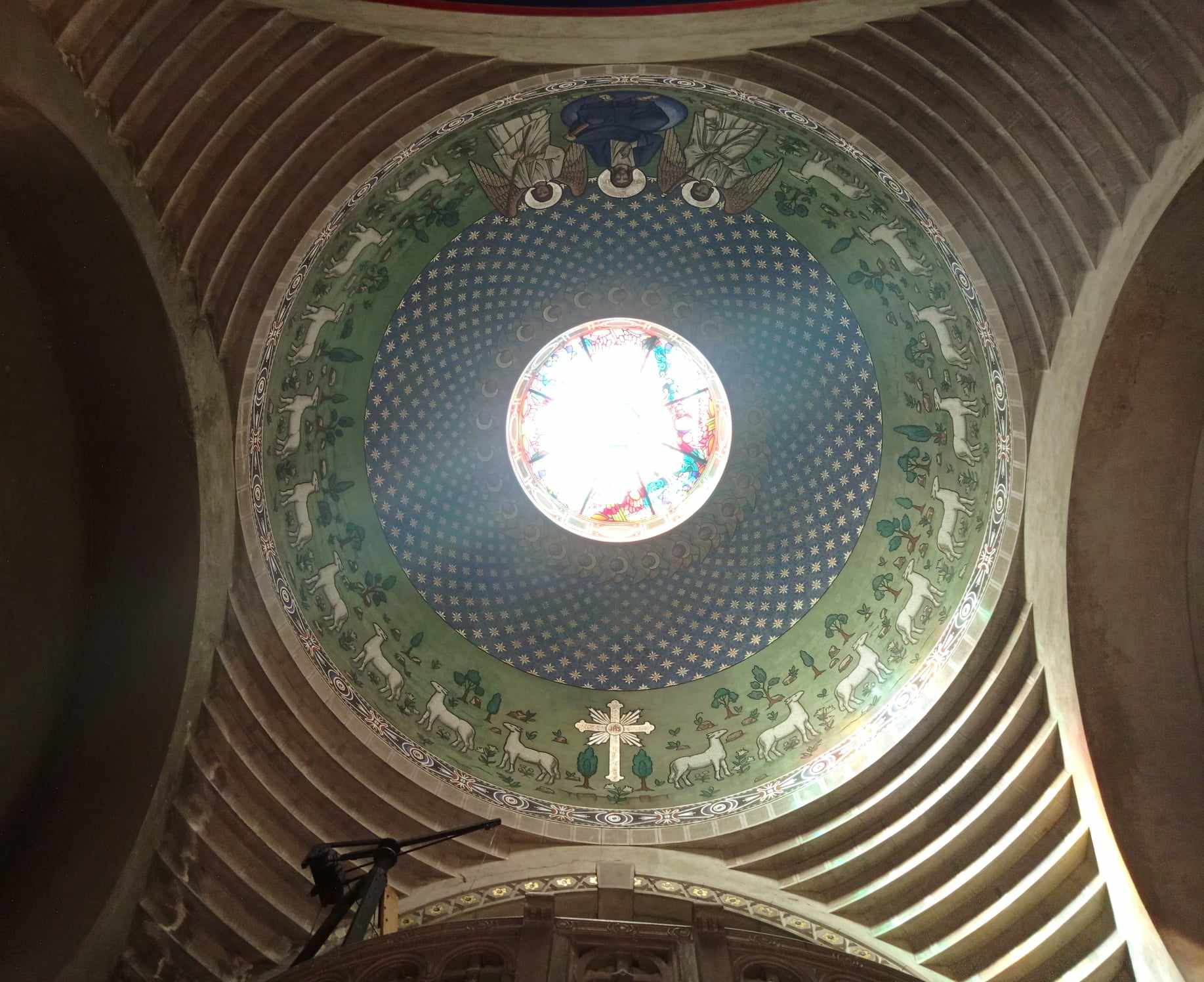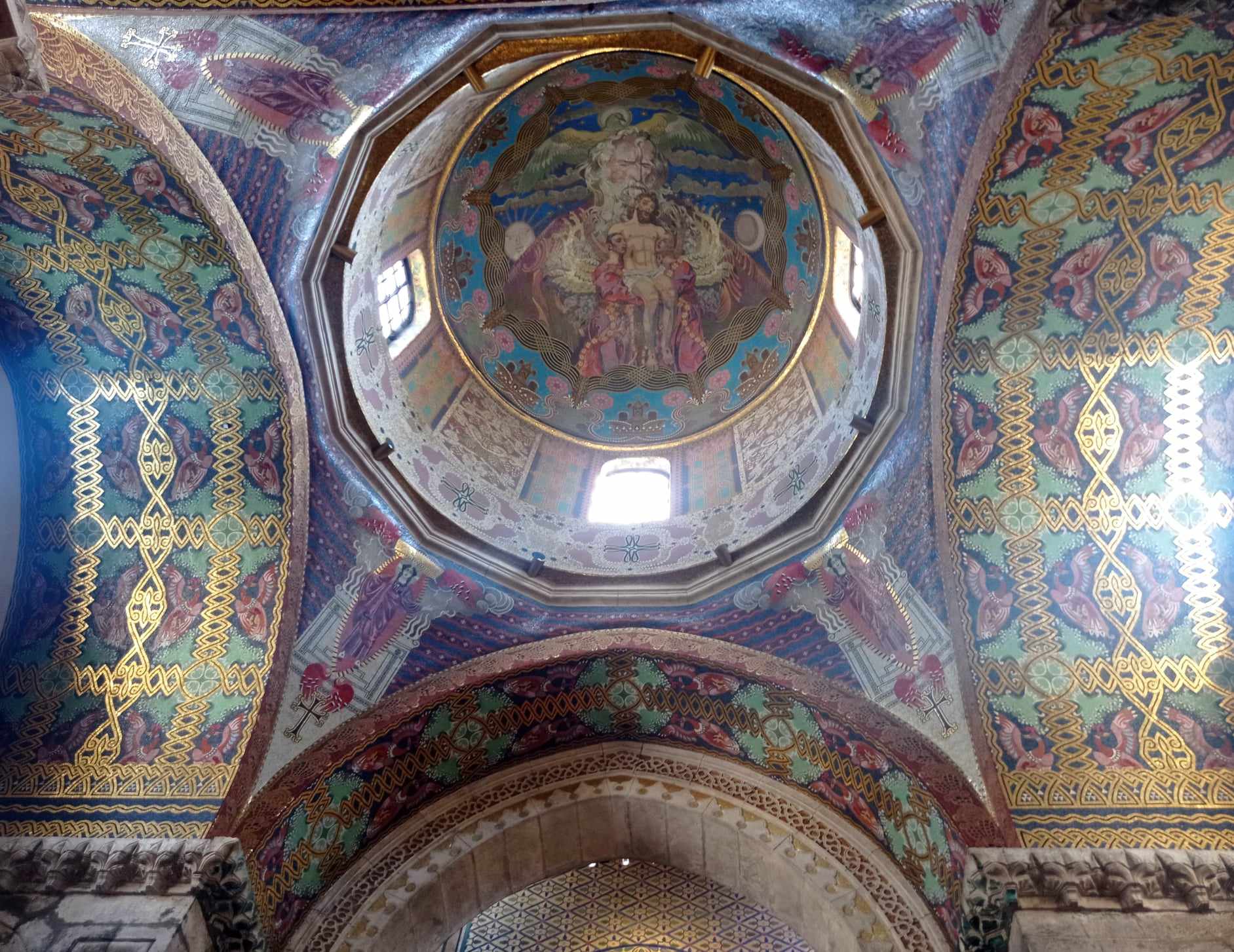 «В нашому храмі є найстарша фреска у Львові. У вівтарній частині, одній із найстарших частин храму, праворуч є віконна ніша. У свій час цю нішу замурували зовні, а всередині поставили бароковий дерев’яний вівтар – тоді була мода бароко. А потім, коли митрополит Теодорович вирішив позбутися від бароко і прикрашати храм мозаїкою, він почав ці вівтарі дарувати різним храмам. І коли зняли той вівтар, зауважили, що там є фреска – це було в 1924 році. Це була сенсація, всі газети писали, що у Львові знайшли найстаршу фреску – кінець XIV або початок XV століття. Ліворуч зображений святий Яків, праворуч – святий Ян зі своїм учнем Прохором, а на найвищому місці – Ісус Христос в мандорлі, і вірменські написи», – розповів диякон Армен.