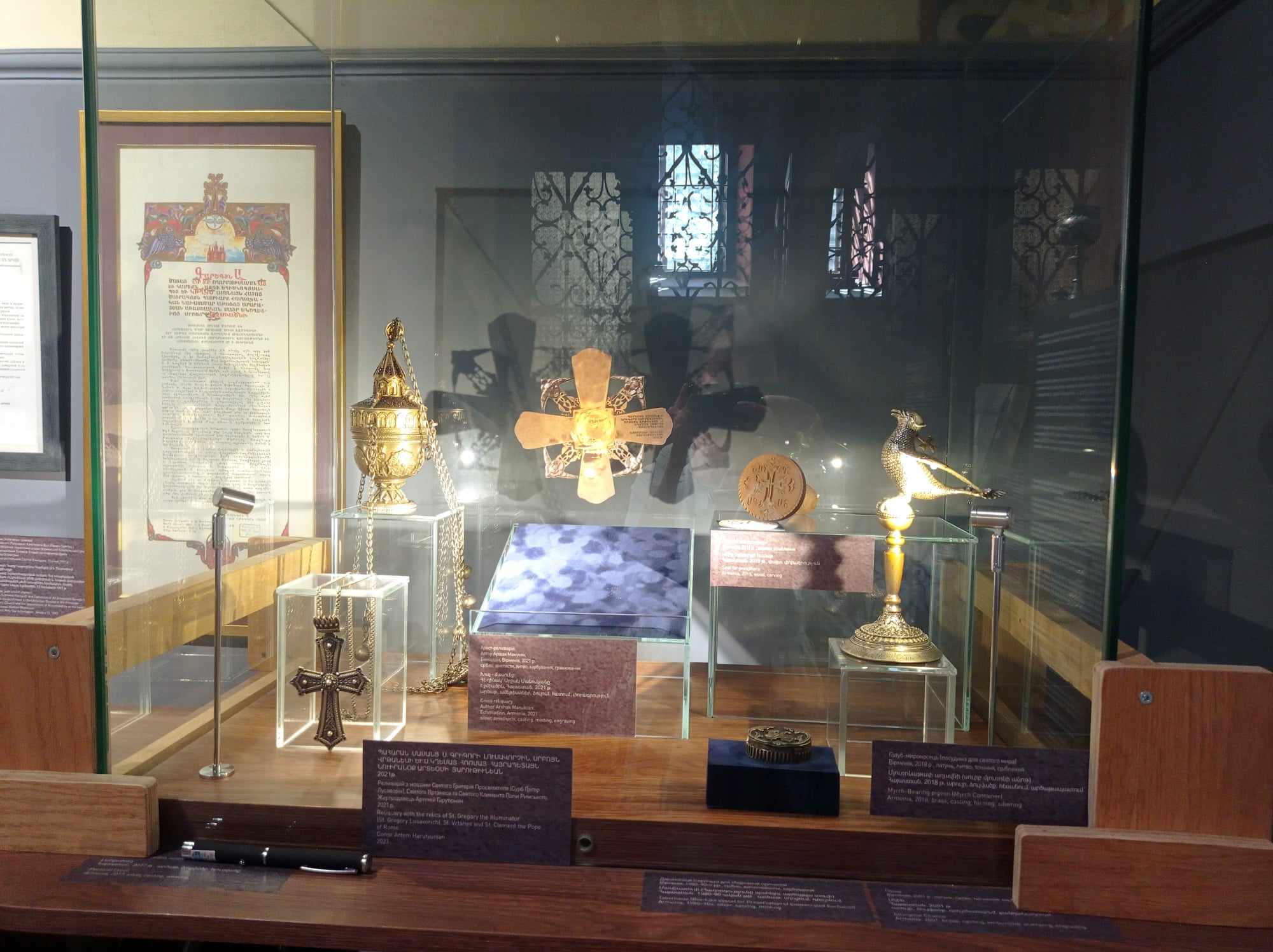 У музеї збережені оригінали постанови про початок створення української єпархії, яку в 1991 році видав Католікос усіх вірмен Вазген І, а також Кондак його наступника, Гарегіна І, про підтвердження української єпархії Вірменської Апостольської Церкви. Тут зібрані особисті єпископські жезли XVIII, XIX та ХХ століть, а ще – цікава експозиція богослужбових речей, чимало з яких привезені з вірменського духовного центру Ечміадзину. Як розповів о. Карапет, храм і громада прийняла Унію і триста років була вірмено-католицькою, тому збережені артефакти дозволяють порівняти атрибути вірмено-апостольської та вірмено-католицької церков. Загалом же дізнатися про історію Вірменської Церкви відвідувачам допомагають інформаційні стенди та світлини трьох етапів життя вірменської громади в ХІХ-ХХІ ст.