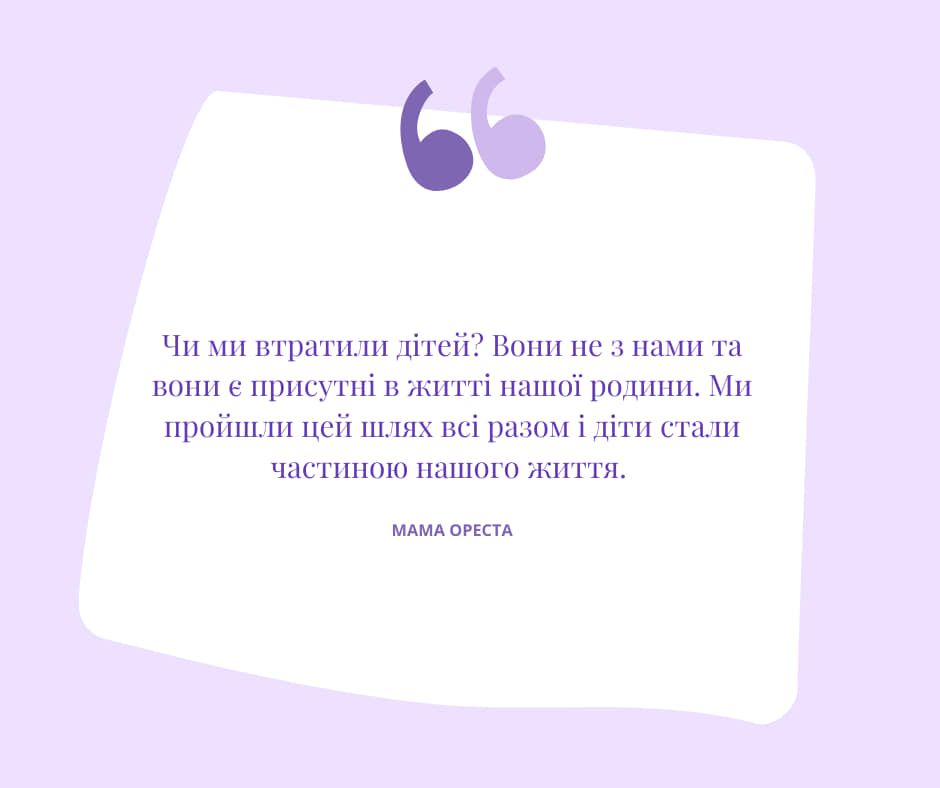 Мама Ореста: «Чи ми втратили дітей? Вони не з нами та вони є присутні в житті нашої родини. Ми пройшли цей шлях всі разом і діти стали частиною нашого життя»