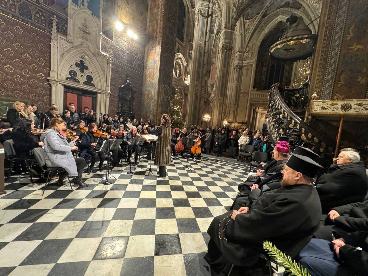 Богослужіння супроводжував співом хор із Калуша разом із камерним оркестром. Хор також виконав сталі частини Різдвяної Меси, яку в 2025 році написав харківський композитор Дмитро Малий.