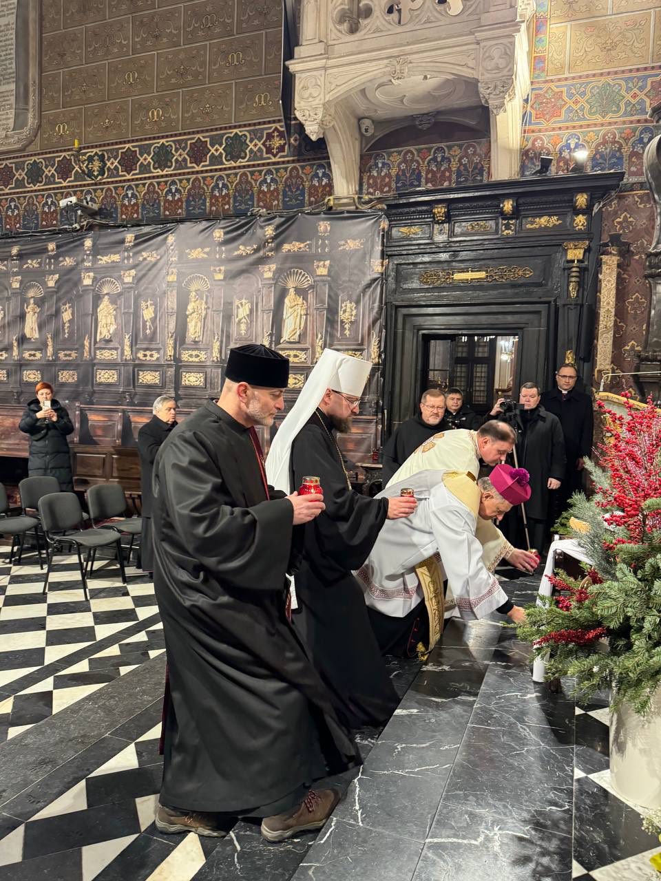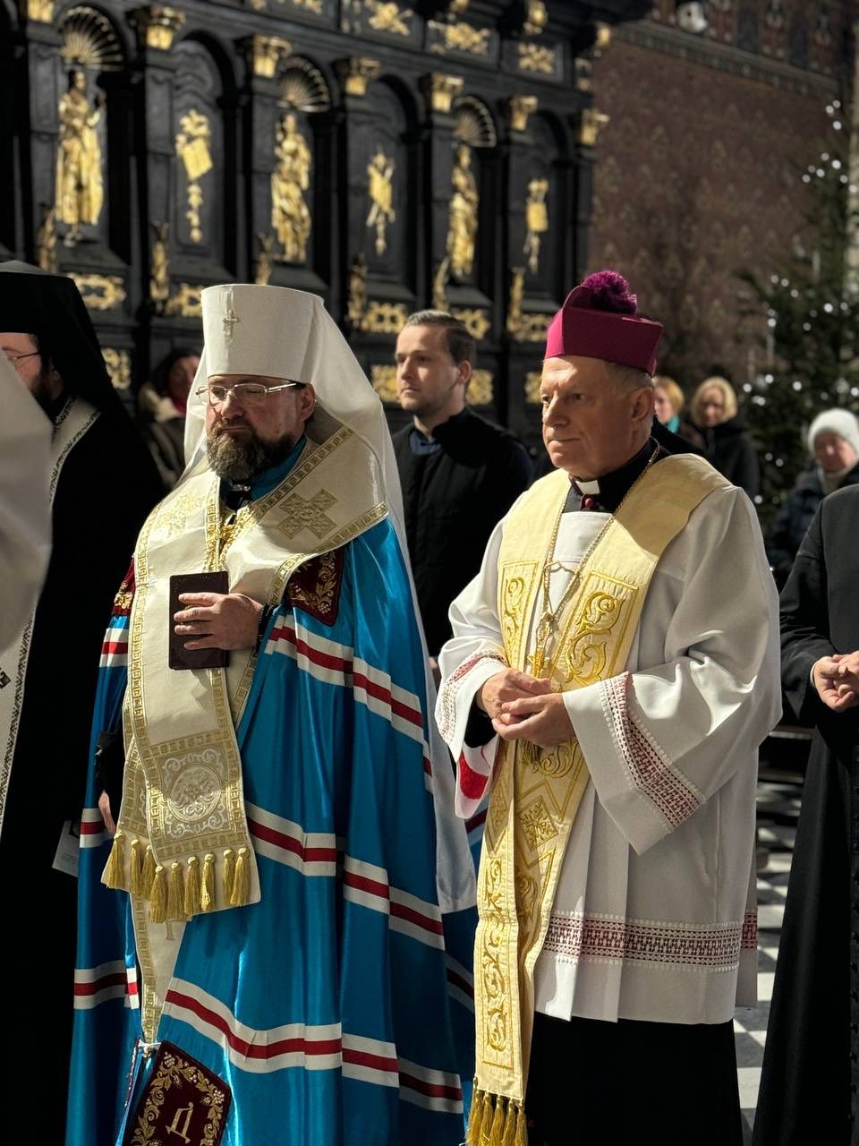 Молебень за єдність християн та Україну звершив Митрополит Львівський і Сокальський ПЦУ Димитрій (Рудюк) разом із деканом богословського факультету Львівської православної богословської академії ієромонахом Кіпріаном (Лозинським) та делегацією від ПЦУ.