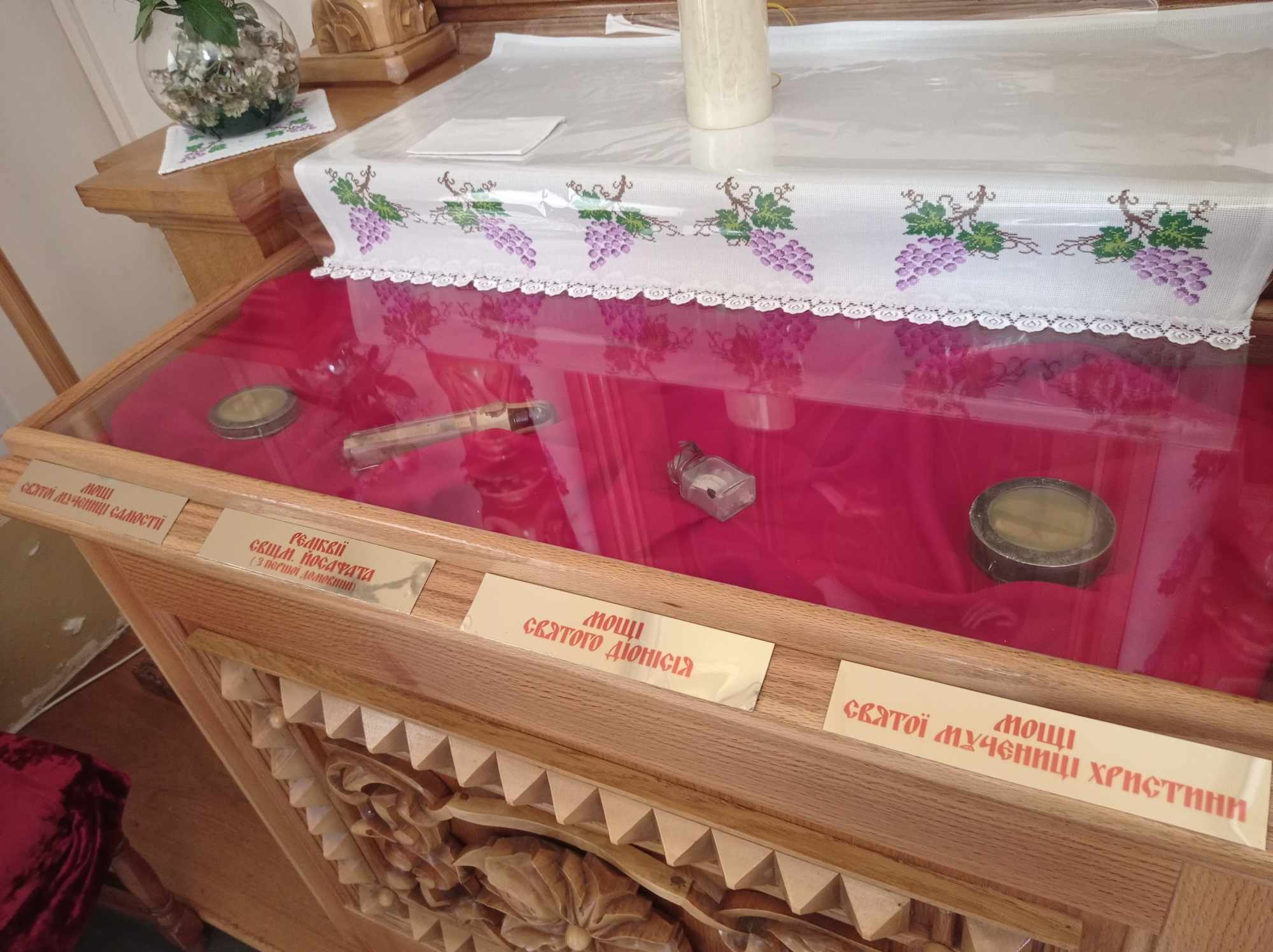 У монастирському храмі можна побачити та вшанувати кілька особливих реліквій. Мощі святих розміщені у двох бокових вівтарях. Ліворуч – мощі святої Салюстії, свщмч. Йосафата – реліквія з першої домовини, святого Діонісія та святої Христини. У правому вівтарі спочивають мощі блаженного Василія Величковського, новомученика УГКЦ.