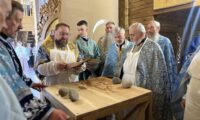 Звичайно посеред храму правимо молебень тому святому, на честь якого побудований храм. Після цього звершуємо мале освячення води.