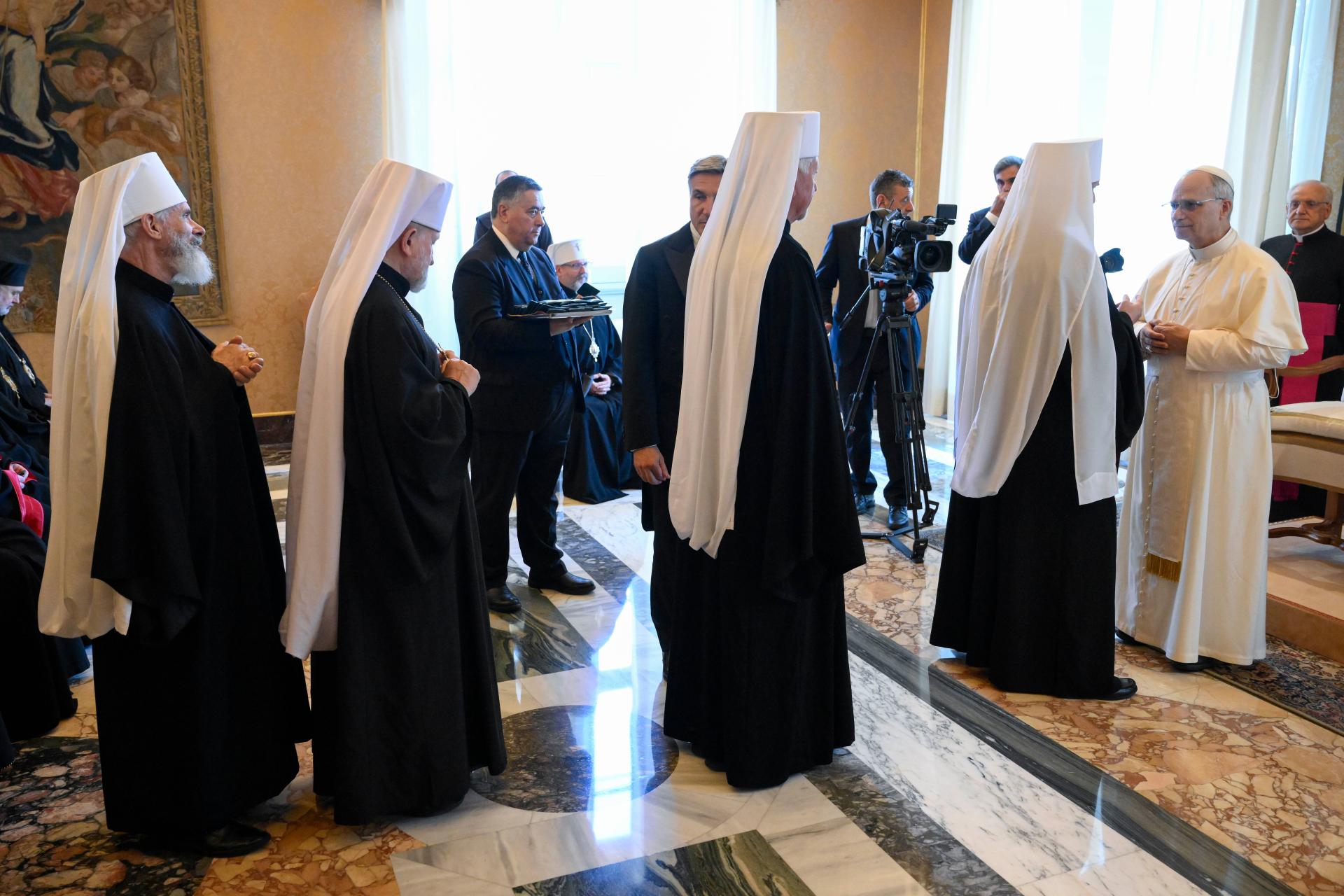 «Я близький до вас, і через вас я близький до всіх вірних вашої Церкви», – сказав Папа Лев XIV у своєму слові до єпископів. «В нинішніх історичних умовах нелегко говорити про надію вам і людям, довіреним вашій пастирській опіці. Нелегко знайти слова втіхи для сімей, які втратили своїх близьких у цій безглуздій війні. Уявляю, що це важко також і для вас, які щодня контактуєте з людьми, пораненими в серці і тілі. Незважаючи на це, я отримую численні свідчення віри і надії від чоловіків і жінок вашого народу. Це знак Божої сили, яка проявляється серед руїн знищення».