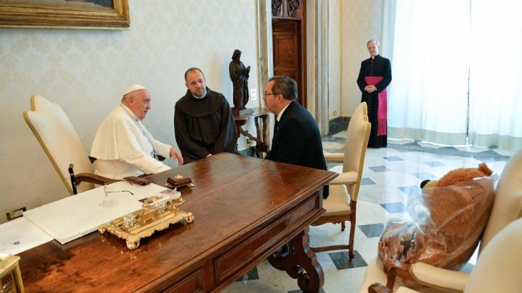 Як символ трагедії, яку переживає Україна, Посол подарував Святішому Отцю плюшевого ведмедика, знайденого в будинку, який 14 січня 2023 р. був знищений російською ракетою в Дніпрі, де загинуло 46 людей, між якими – троє дітей. Порвана та обгоріла в деяких місцях іграшка, була знайдена під завалами.