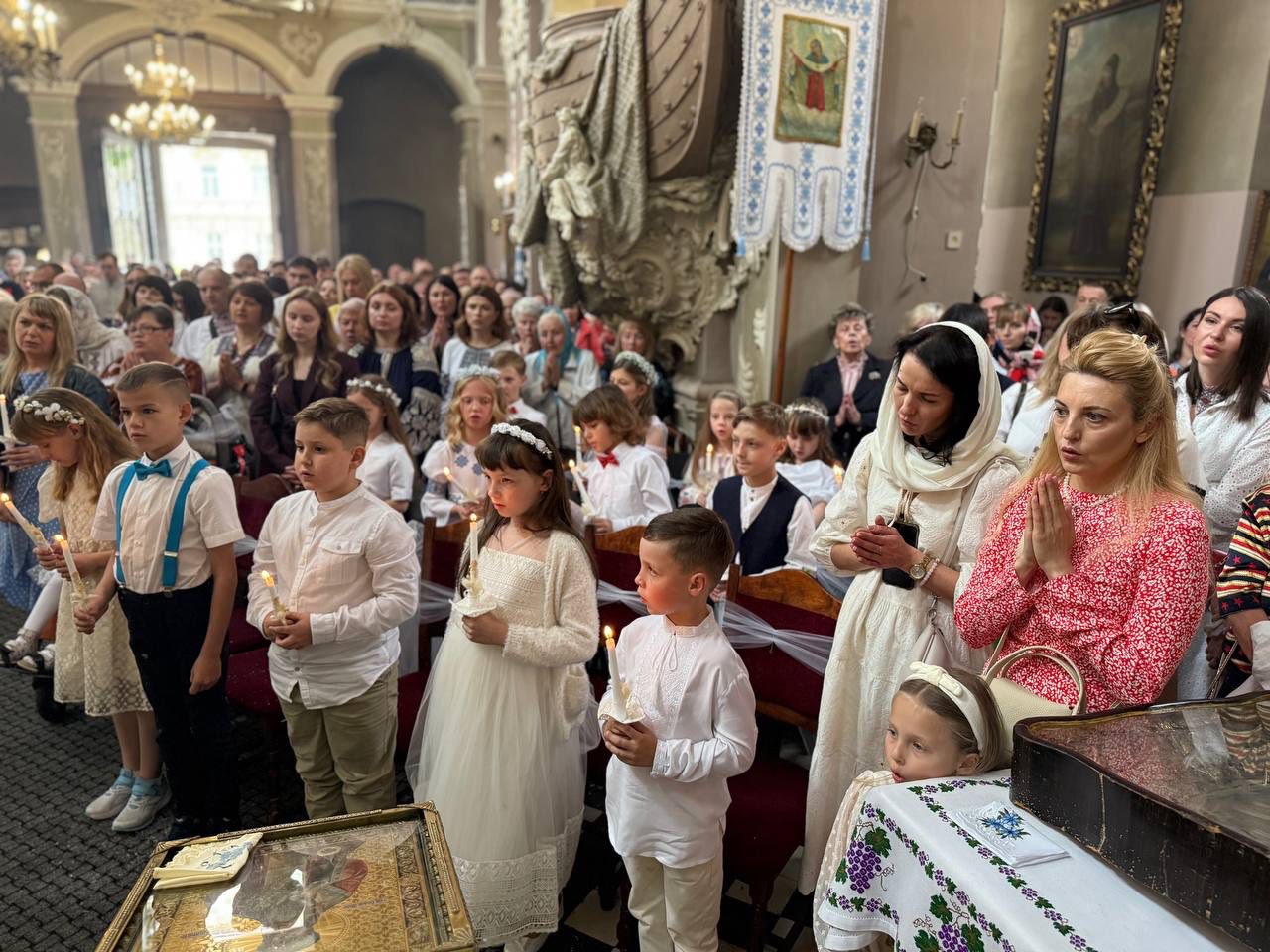 Близько 30 дітей приступили цієї неділі, 1 червня, до врочистої Першої Сповіді та урочистого Причастя в Свято-Покровському кафедральному соборі Львівсько-Сокальської єпархії ПЦУ.