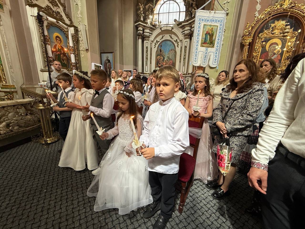 Торжество Першого Святого Причастя для дітей настільки полюбилося вірним, що миттєво поширилось по всьому світові. Його також залюбки прийняли в Галичині і не лише римо-, але й греко-католики. Цього дня хлопчики і дівчатка особливо нарядні, вбрані, немов до шлюбу, храм прикрашений, а настрій присутніх по-особливому святковий. Розділити радість торжества дітей приходять рідні, знайомі та хресні. Для декого з них це гарна нагода взагалі відвідати храм.