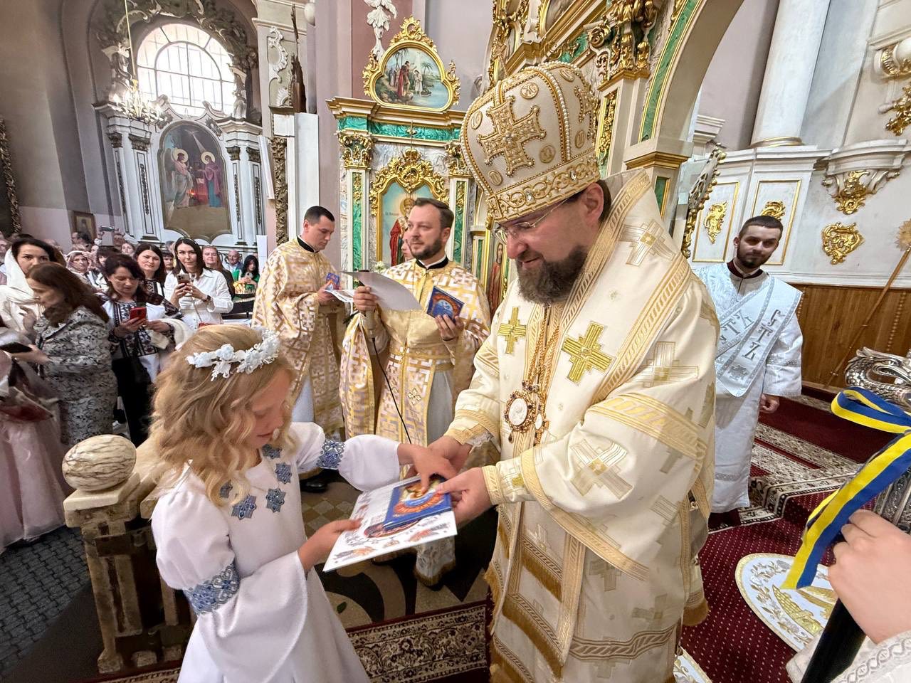 «Традиція урочистого Першого Причастя більш практикується в Західній Церкві», — розповідає ключар собору о. Михайло Сивак. «В Україні вона особливо розвинута в Галичині, на Східному Поділлі та на Закарпатті. Але коли говорити про Православну церкву, то все-таки це свято ми називаємо не “Перше Причастя”, а “Перша Сповідь і урочисте Причастя”, тому що в православній традиції діточок можна причащати від самого народження. Бо якщо дитина охрещена, то вже може причащатися, щоб зростати в Божій благодаті, приймати в себе Христа і розвиватись разом із Христом у своїй душі. Відповідно, коли дитина досягає свідомого віку, в межах 7-8 років, традиційно організовується свято Першої Сповіді і урочистого Причастя».