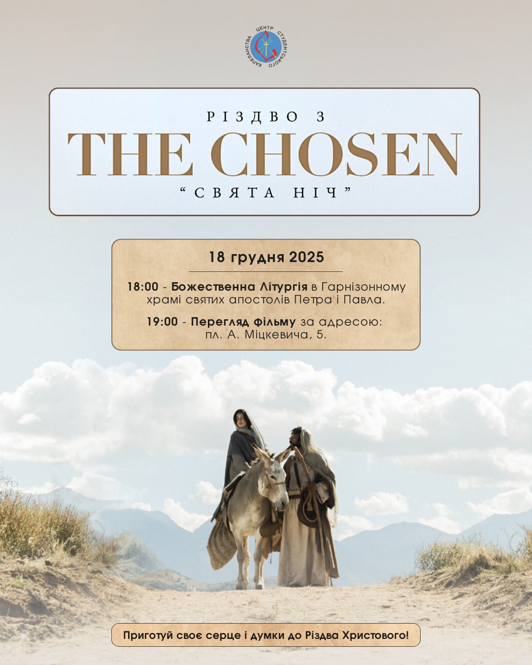 Центр Студентського Капеланства Львівської Архиєпархії УГКЦ запрошує всіх охочих на спільний безкоштовний перегляд різдвяного епізоду зі серіалу The Chosen, щоб приготувати серце і думки до Різдва Христового.