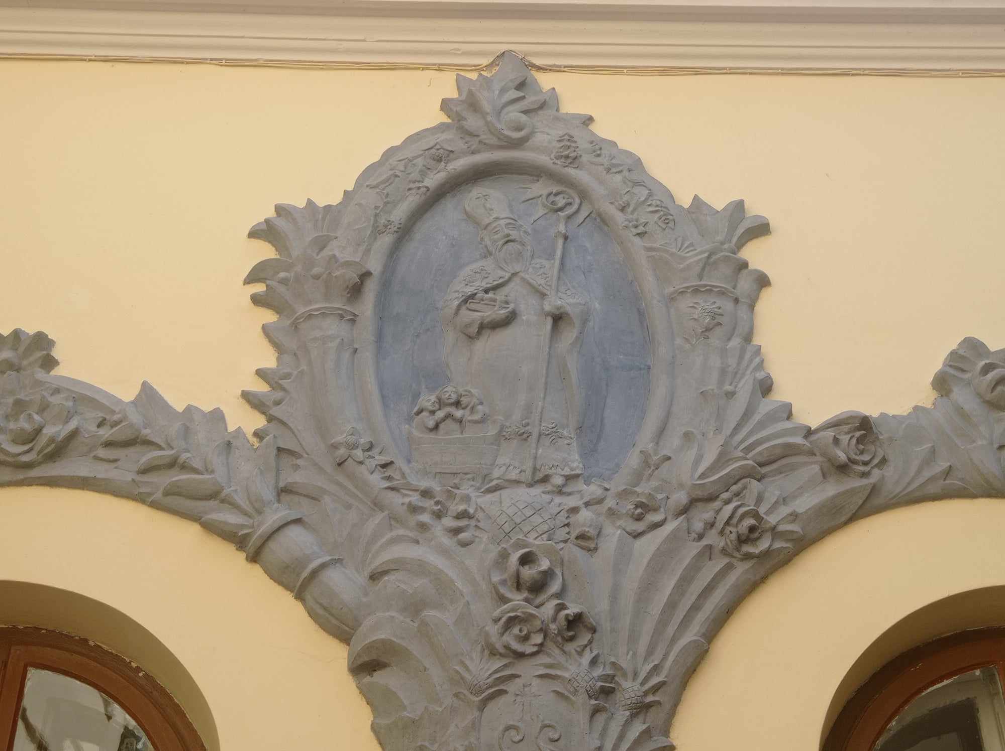 Цікаві пам’ятки збереглися не лише всередині, а й зовні храму, і продовжують доповнюватися – а деякі з них – і відкриватися у незвичайний спосіб. Так, наприклад, коли кілька років тому, коли відновлювали фасад у внутрішньому дворику комплексу, під нашаруванням виявили зображення усміхненого святого Миколая з подарунками в руках та оточеного дітьми. Отець Михайло зазначив, що, ймовірно, воно було заліплене у радянський час. Так само вдалося відреставрувати і пам’ятні дошки на стінах, раніше приховані під шаром цементу.