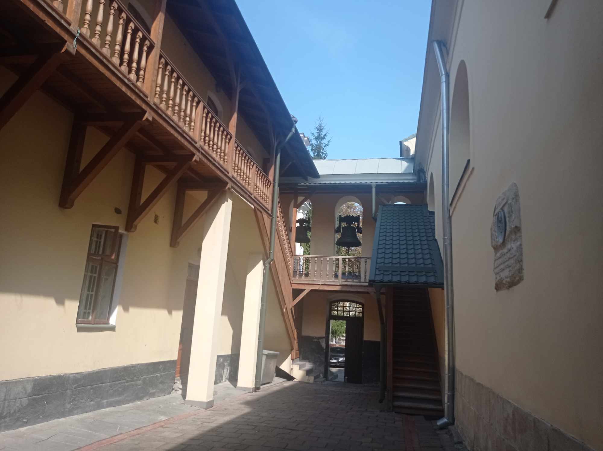 Внутрішній двір храму з відновленими елементами фасадів