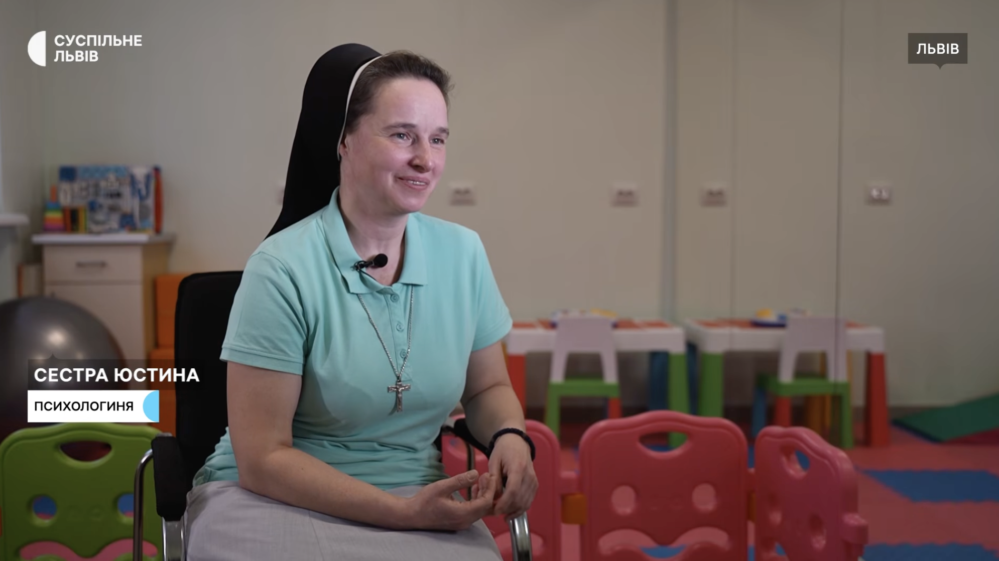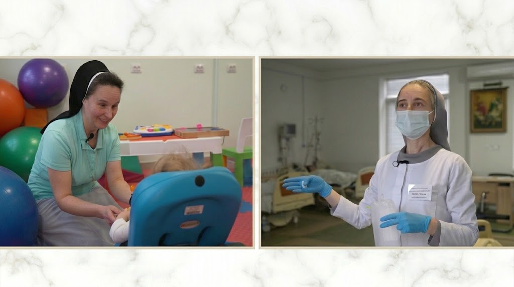 Сестра Юстина родом зі Львова та належить до греко-католицького Згромадження Сестер Служебниць Непорочної Діви Марії. Працює вона клінічним психологом у відділенні реабілітації раннього дитинства. «Моє Згромадження… від самого початку заснування мало три напрямки, і один з них – служити бідним, убогим і хворим», – розповіла сестра Юстина.