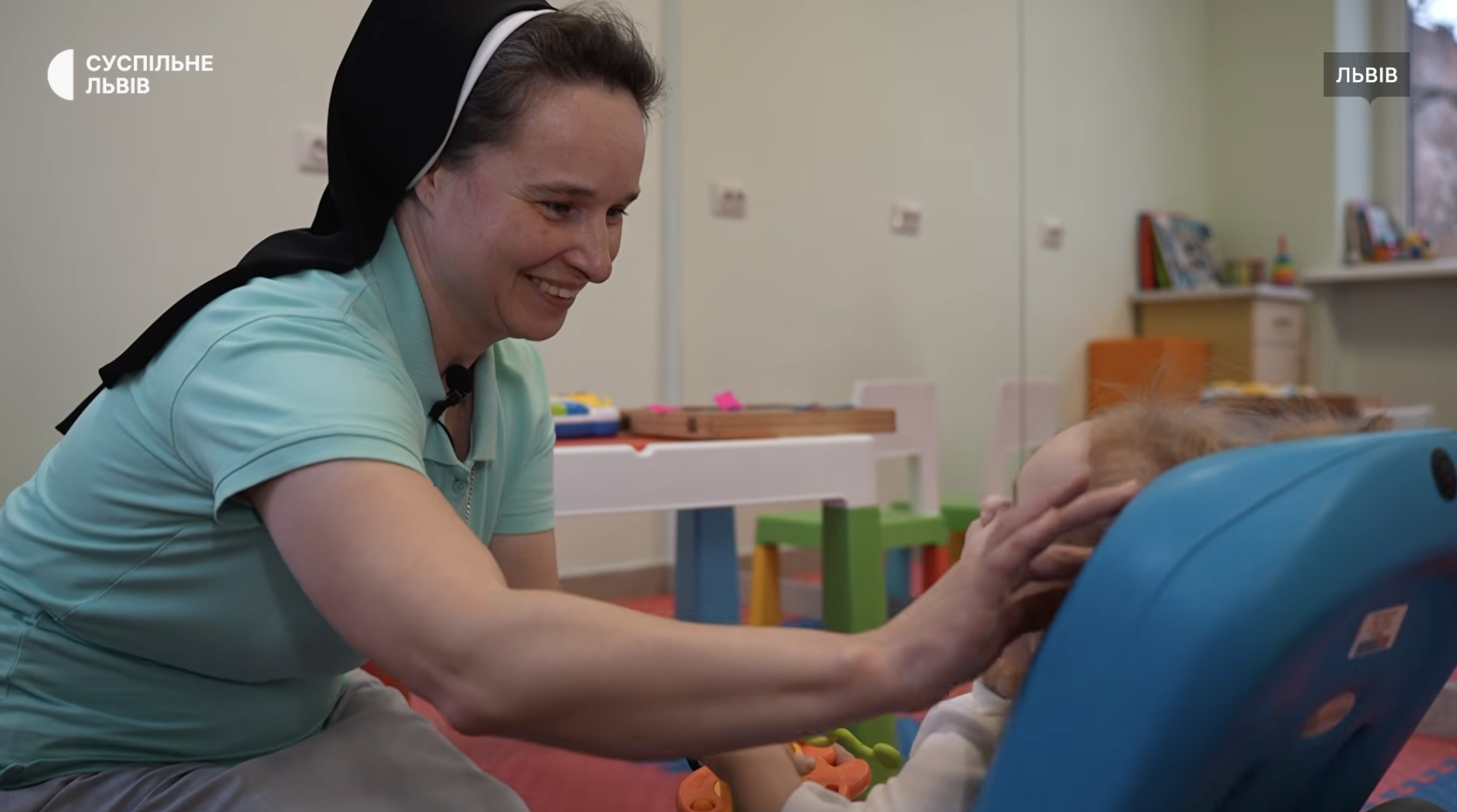 До відділення, в якому вона працює, потрапляють діти віком від нуля до трьох років, також є передчасно народженні. «Оскільки тут є поруч пологове відділення, мене запрошують і кличуть туди. Навіть якщо народжуються наші діти і знаходяться у відділі інтенсивної терапії, самі мами там потребують найбільше психологічної допомоги, підтримки, супроводу – іноді я туди йду, іноді батьки приходять сюди. Потім діти підростають… і якщо вони потребують реабілітації, ми працюємо з ними в тому відділенні до трьох років», – розповіла сестра-служебниця.