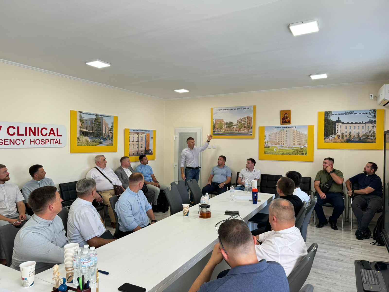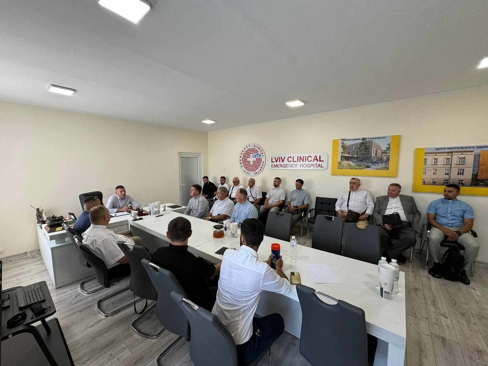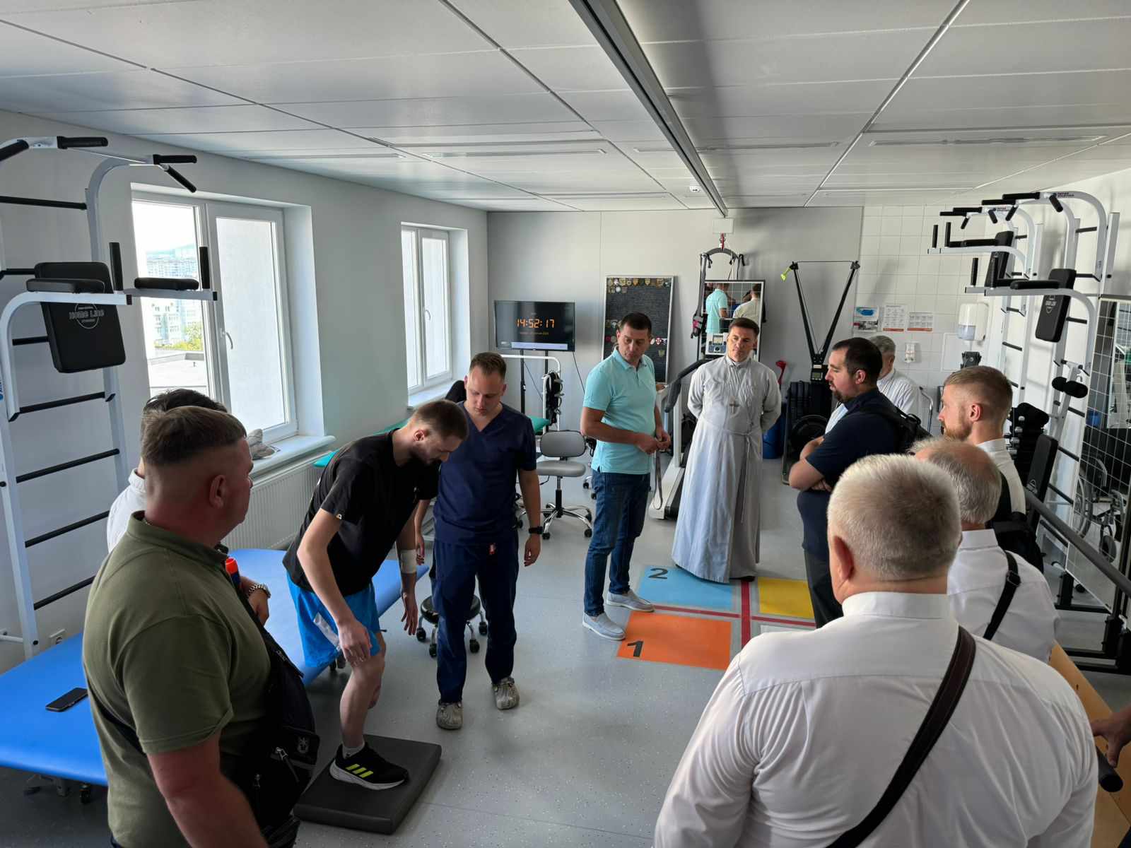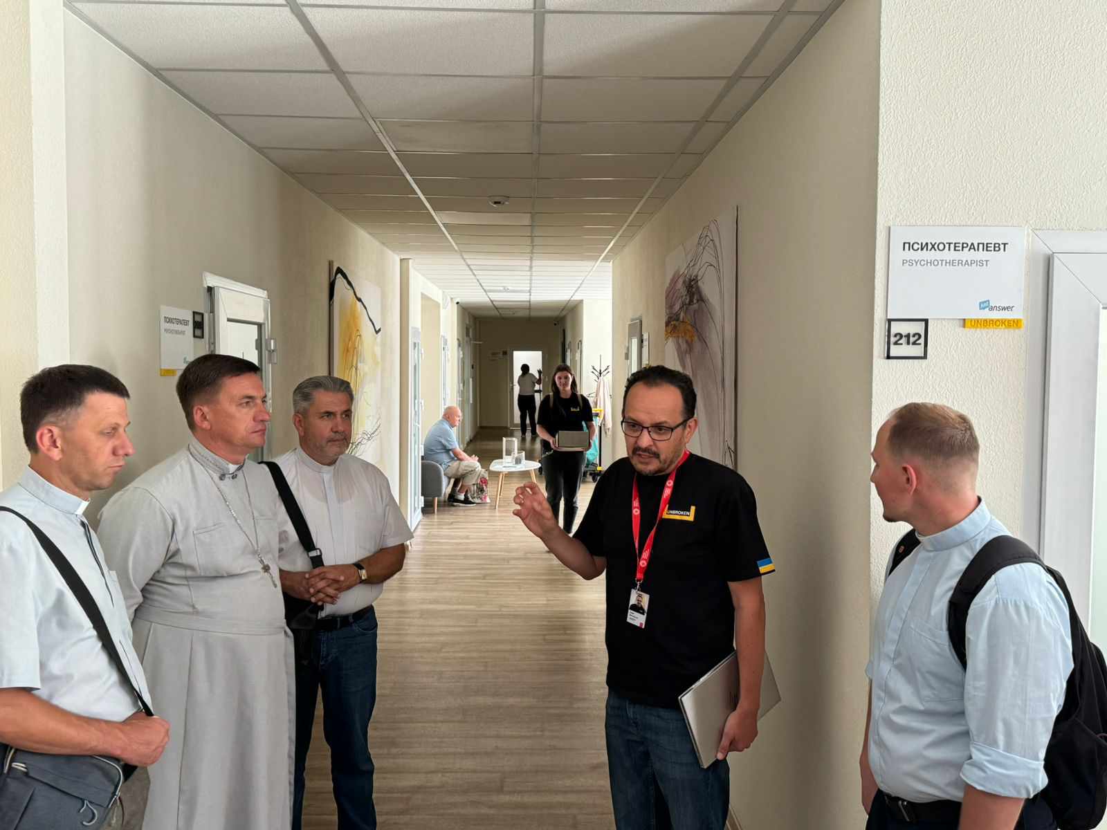 Зустріли отців Генеральний директор 1 ТМО Олег Самчук та директор лікарні св. Пантелеймона Юліан Голик. Відтак екскурсію проводили Ігор Кошівка — директор з фізичної реабілітації та Олег Березюк — керівник Центру ментального здоровʼя.