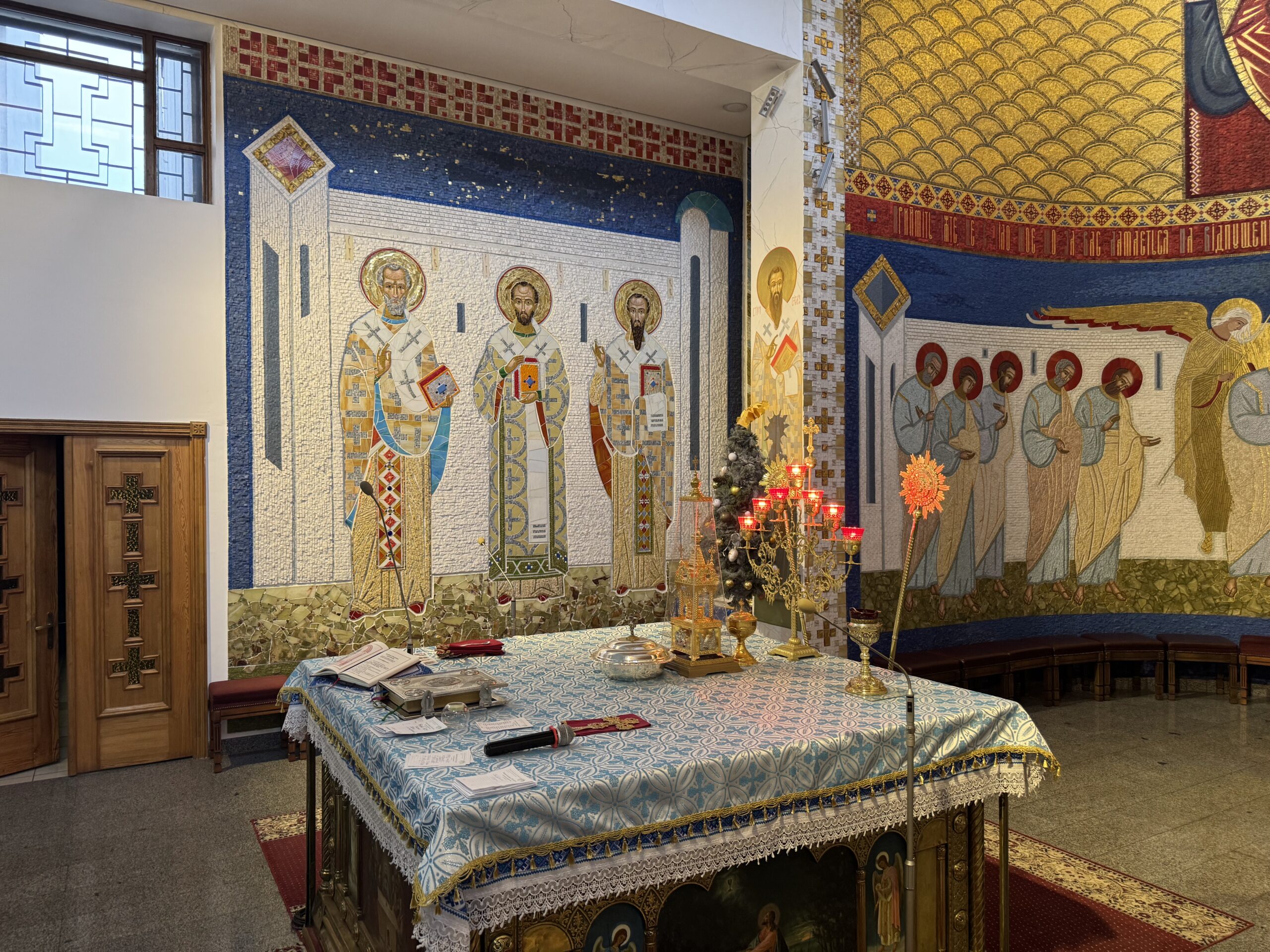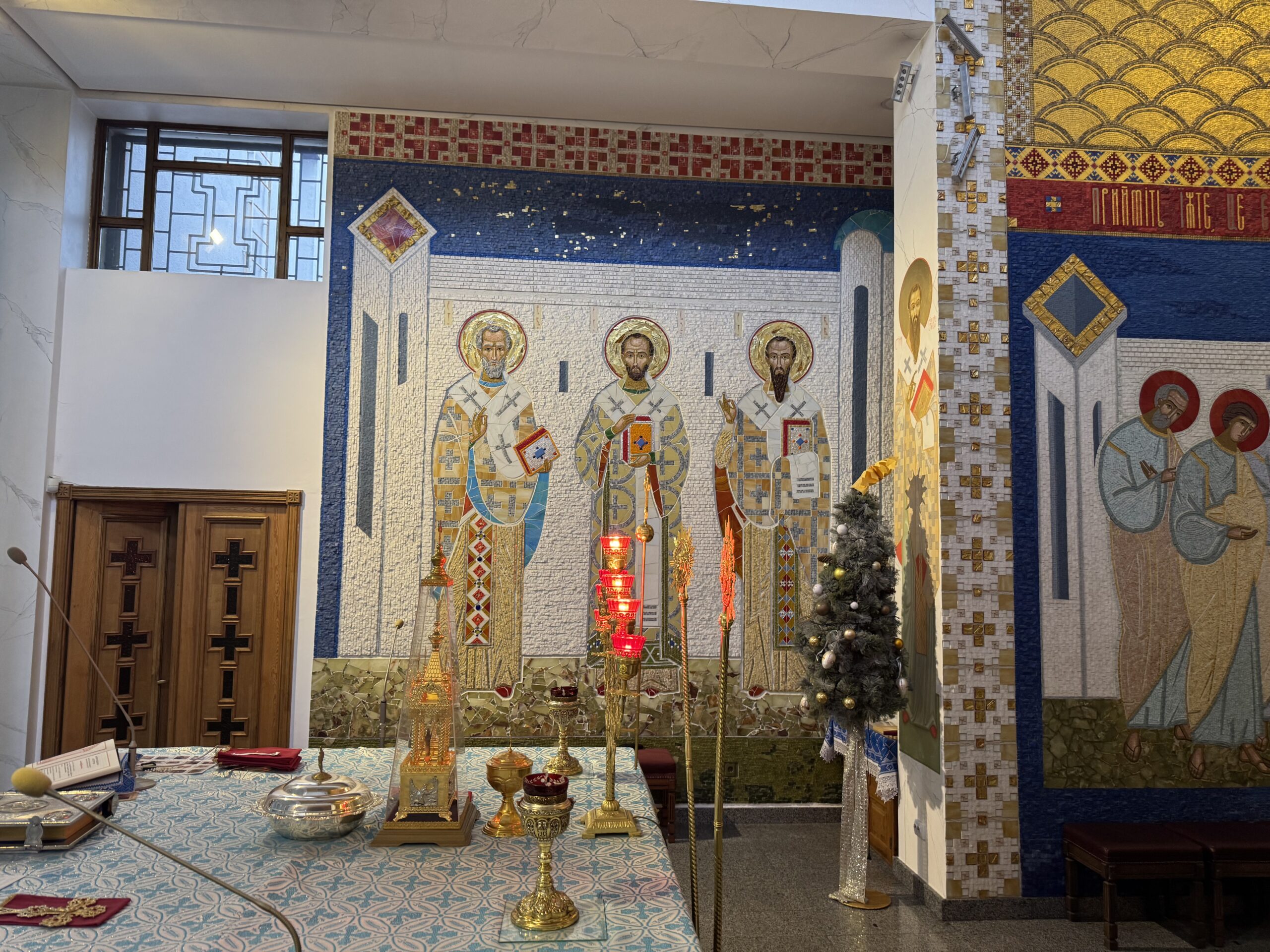 Храмові зображення вибирали разом з іконописцем, щоби передати символізм. Наприклад, святий Ігнатій – один із перших учнів апостолів. Також у Святилищі можна побачити Теодора Студита, Папу Григорія Двоєслова, якого вважають автором Літургії Преждеосвящених Дарів, а також – Папу Климентія. Це четвертий за рахунком єпископ Риму після апостола Петра; він загинув на каторзі в Інкермані, в Криму, а його голова перебуває в Києво-Печерській Лаврі і досі мироточить. Мощі Папи Климентія віднайшли у IX ст. святі Кирило і Методій.
